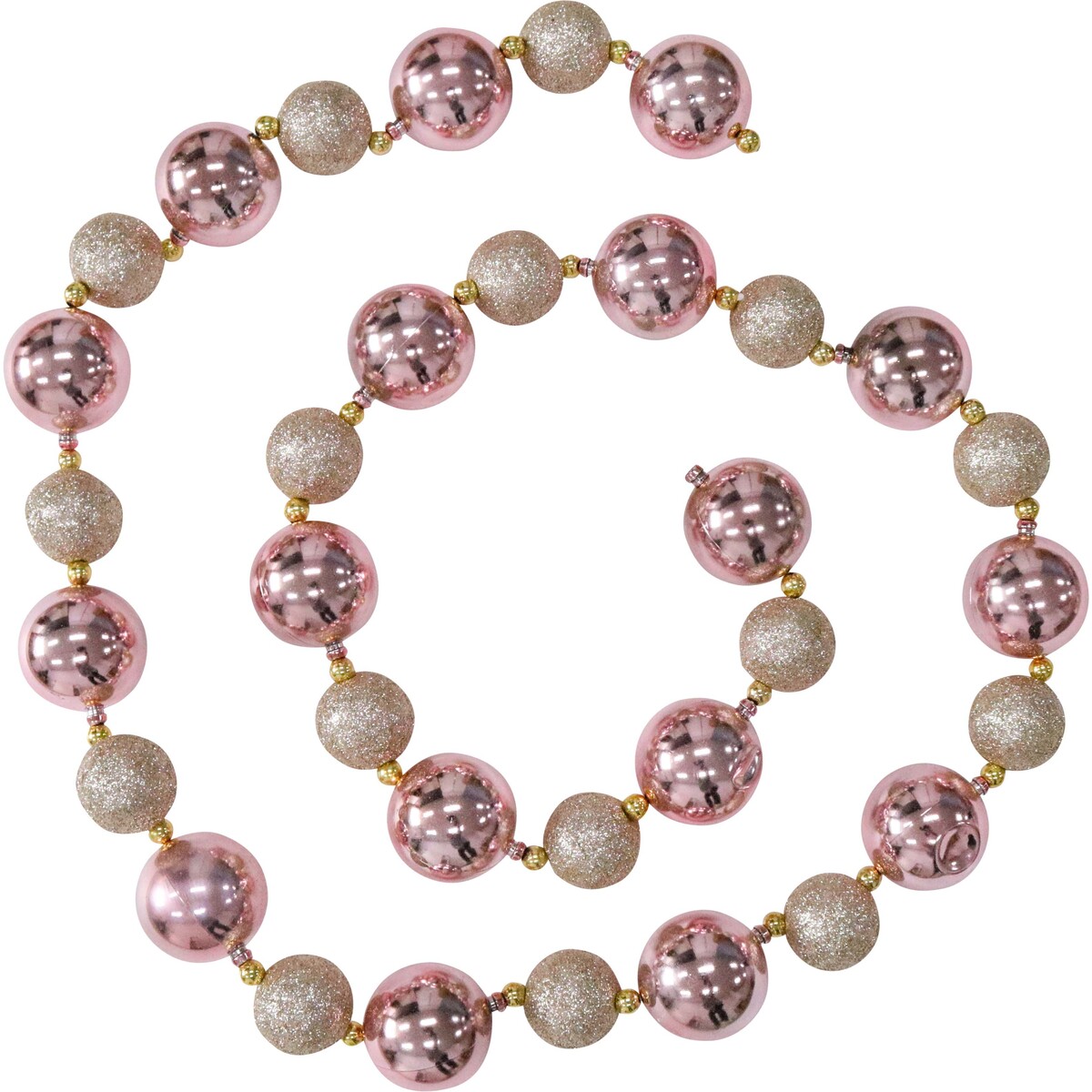 Measuring approximately 180cm in length, this garland is versatile enough for various displays - whether draped along mantelpieces, woven through banisters, or used as a statement centrepiece on a festive table. The mix of soft pink and champagne hues offers a unique design that pairs beautifully with classic holiday themes or even contemporary interiors looking for an understated festive accent.