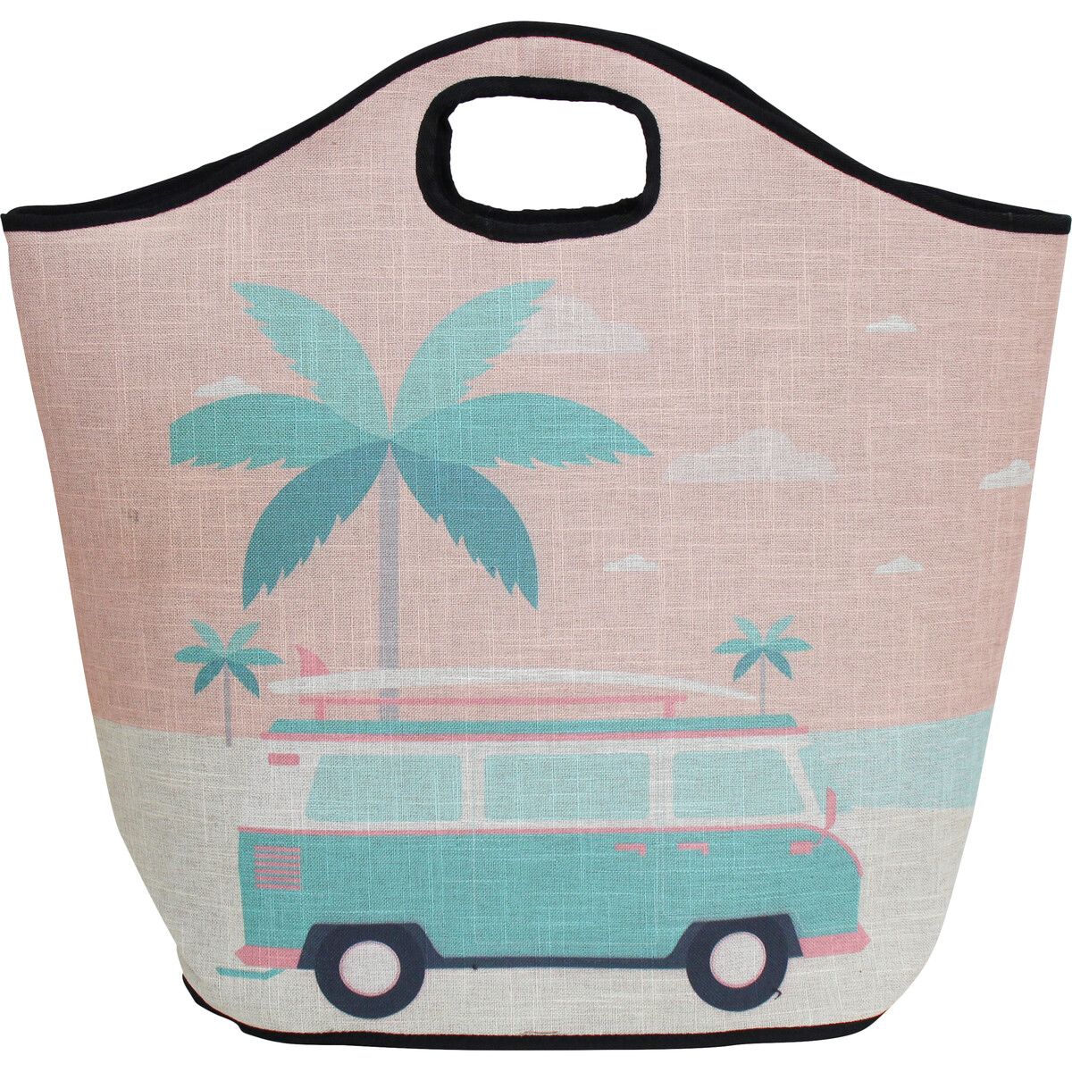 When planning on your day at the beach carrying multitudes of things without having them scattered into too many bags is a necessity - taking care of giving you space, style and a hardy tough option is this neoprene foam made beach bag that comes in the most lightweight and spacious avatar. The pretty pink coloured linen cover adds to its inimitable charm. the soft pastel print adds to its holiday ready looks. The shape of the bag makes it easy to balance sitting as it does on its oval base. The handles are cut - out and easy to group. Edging in black gives definition to its design.