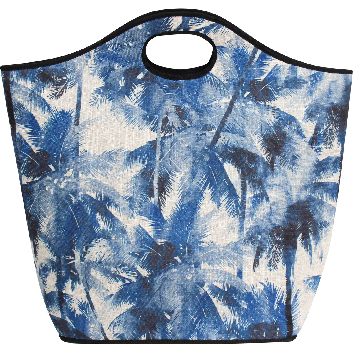 While accessorizing for your summer outings for the beach - a bag makes for a necessity - here is one made from neoprene foam, covered in any palm printed linen, to give it the most unique kind of look. Simple cut - out handles make it easy to grip. The bag sits on a flat oval base that rises to a broader top that will help keep that last minute addition to the world of things you have already placed in the bag. The bag is all of 64 cm in height and 60 cm in width, and is so chic and modern I its unique kind of look. The navy palm print adds to its bright summer ready look! The delicate black edging along the top and the base gives the pattern a clearer definition adding to its pretty looks.