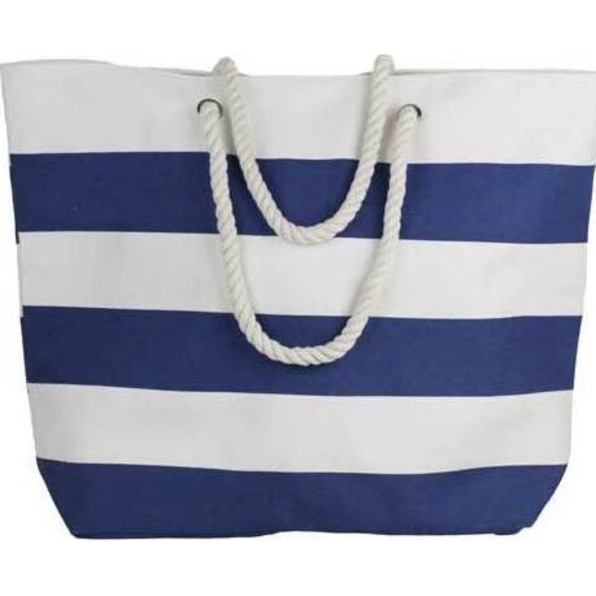 A white and navy blue striped canvas bag that comes with the promise of easing all your space issues when it comes to day long outing , gym trips or shopping trips. A large, strongly structured, and beautifully designed bag that is a stunner with its colours and even more useful with its everyday use features.