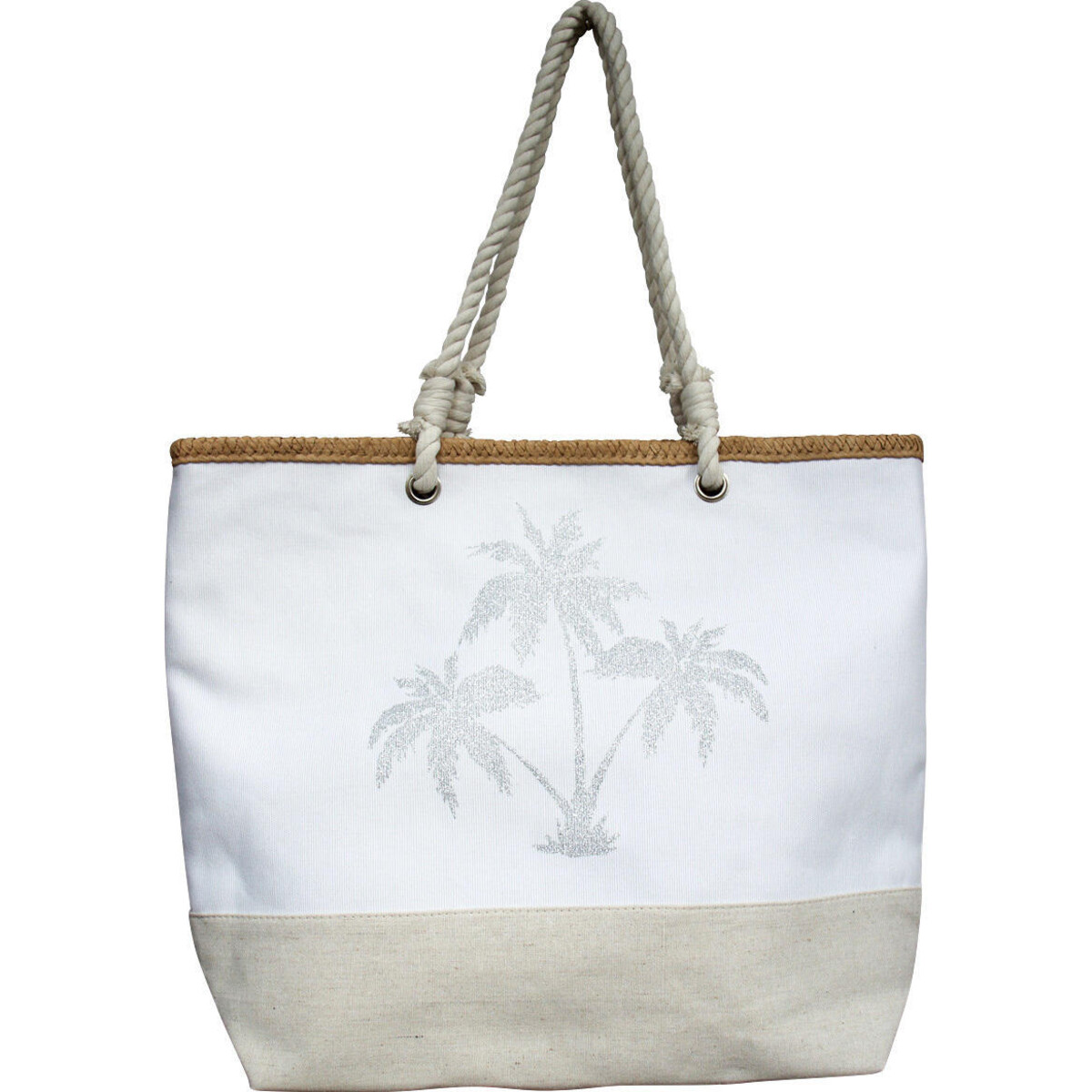 The soft white colour shows off the delicate print of the palm tree right on the face of the bag. The colour and the pattern is in keeping with the simple look that spell elegance and style carry your sandwiches, drinks, your cosmetics or your favourite board game inside its spacious confines and you will find adequate space for all of these and more. The material used is sturdy and the styling chosen will help make it blend in with your beach look clothes. The soft cotton handles are a complete contrast to the sturdier denser cotton used for the body. The straps are knotted through the tiny eyelets on top of the bag while the lower portion of the bag has this broad stripe that helps define the beauty of the bag further.