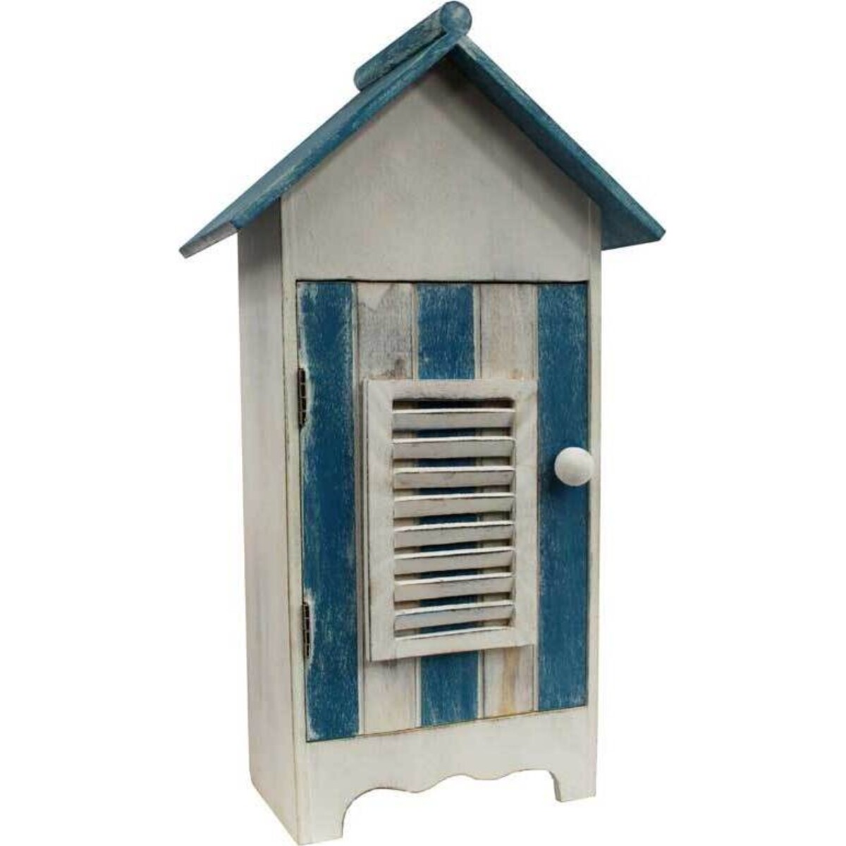 This adorable item consists of an off-white beach house that features a blue roof and a blue-and-white striped door that has an off-white vent at the center as well as a little white knob. It's the perfect piece to use in your home whether you put it in a coastal-themed bathroom, in a guest house by the pool, or even on your kitchen counter. Keep one for yourself, but don't forget to pass one along to a friend who adores beach d_cor just as much as you do. Expect to get a lot of compliments on this accent with many asking where they can get one for their own.