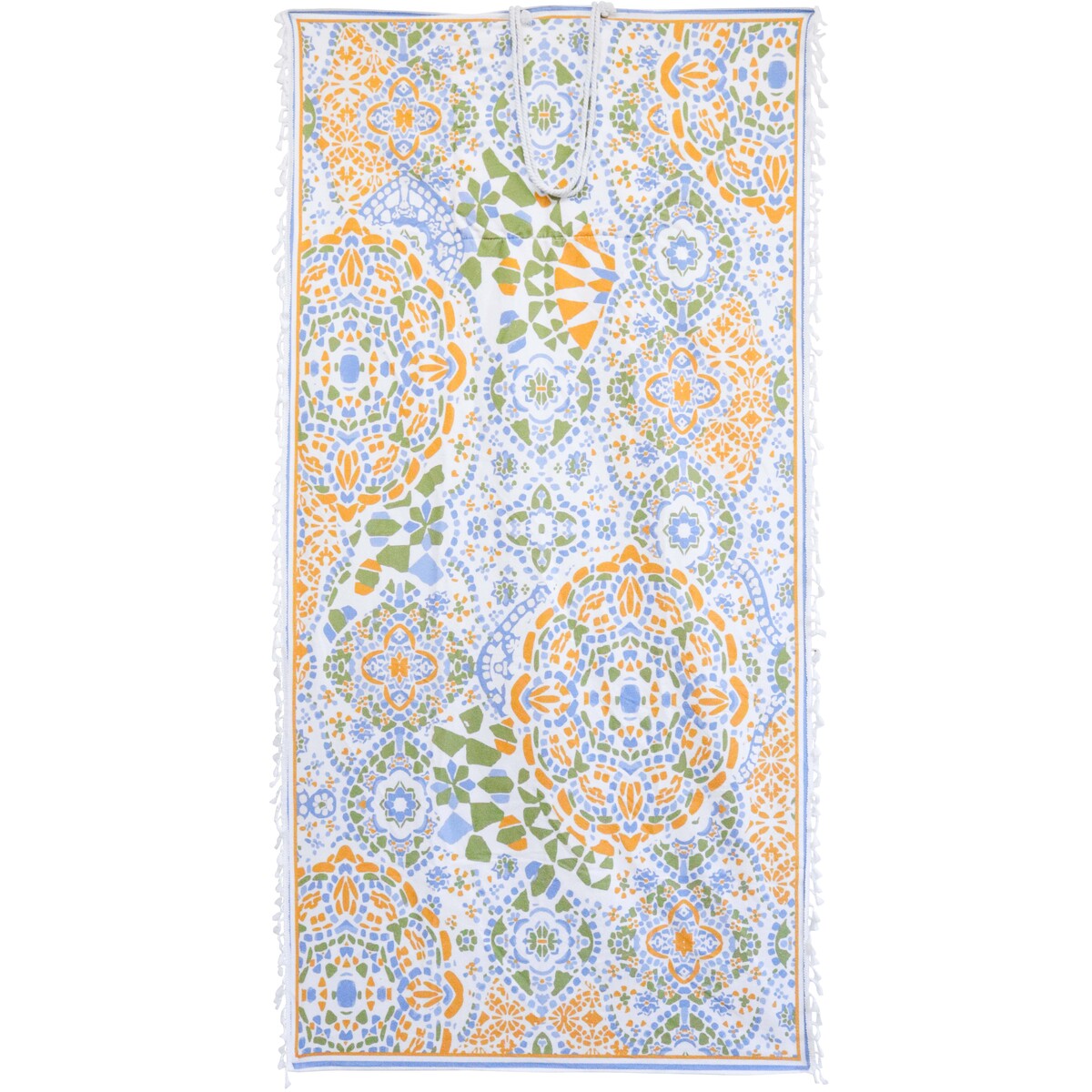 We think our Beach Towel in Bag Moroc is one of those products that’s guaranteed to catch a customer’s eye. The quality feels great - thick microfibre, really soft to the touch but also dries out easily between uses - and the vibrant Moroccan-inspired pattern means it pairs with pretty much every poolside or coastal look we’ve seen. There’s something a little bit timeless about blue, yellow, and green together, especially with those intricate mandala designs.