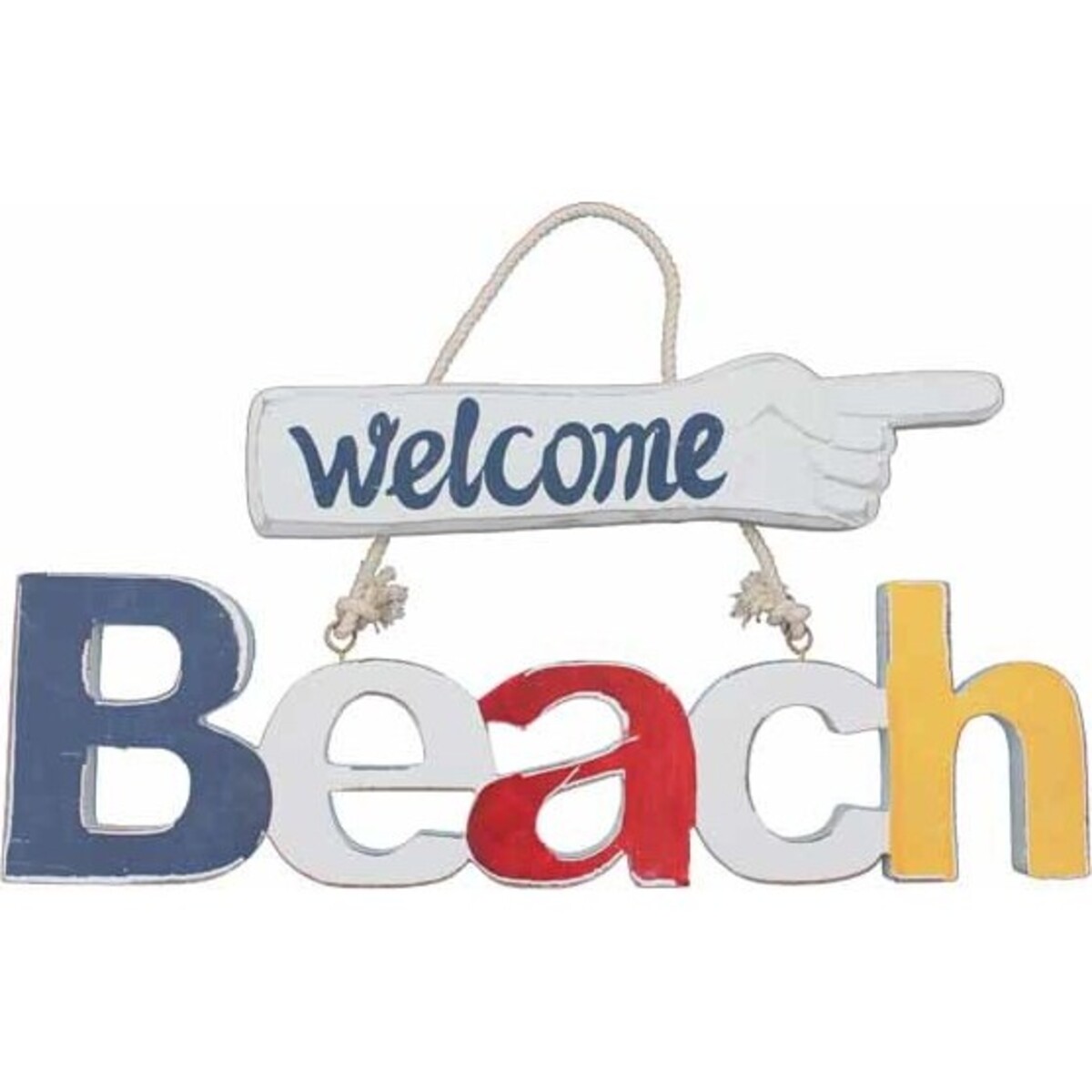 Beach goers will surely never get lost with the Beach Word Pointing and guiding them to the right direction. Aside from that, the beachside ornament makes a great display even though they do not serve the function of a compass or only as a wall d_cor. This beachside ornament is quite simple in make and design. It sports an arm with four fingers clenched and one finger pointing towards one direction. On the hand is warm welcome note written in blue, which makes it stand out pretty well from the plain washed out white background. Below the arm is the word "beach." Some of the letters are colourful blues, and reds and yellows, while the others are as white as the arm. Be it a simple wall d_cor or a sign giving directions, the Beach Word Pointing is one great beachside item to have.