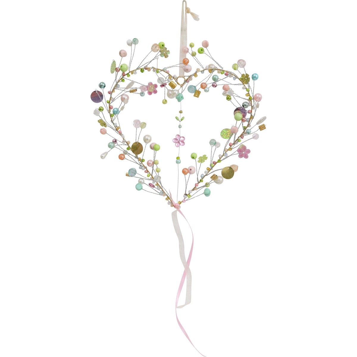 Introducing the exquisite Beaded Heart Amethyst, an enchanting addition to your homewares and giftware collection. Lovingly handcrafted with a delicate combination of wire, glass, plastic, pearls, and ribbon, this heart-shaped ornament exudes charm and elegance. Measuring 17cm in height, the Beaded Heart Amethyst is the perfect size to become a versatile adornment in any space, enhancing the aesthetics of both home and office interiors.