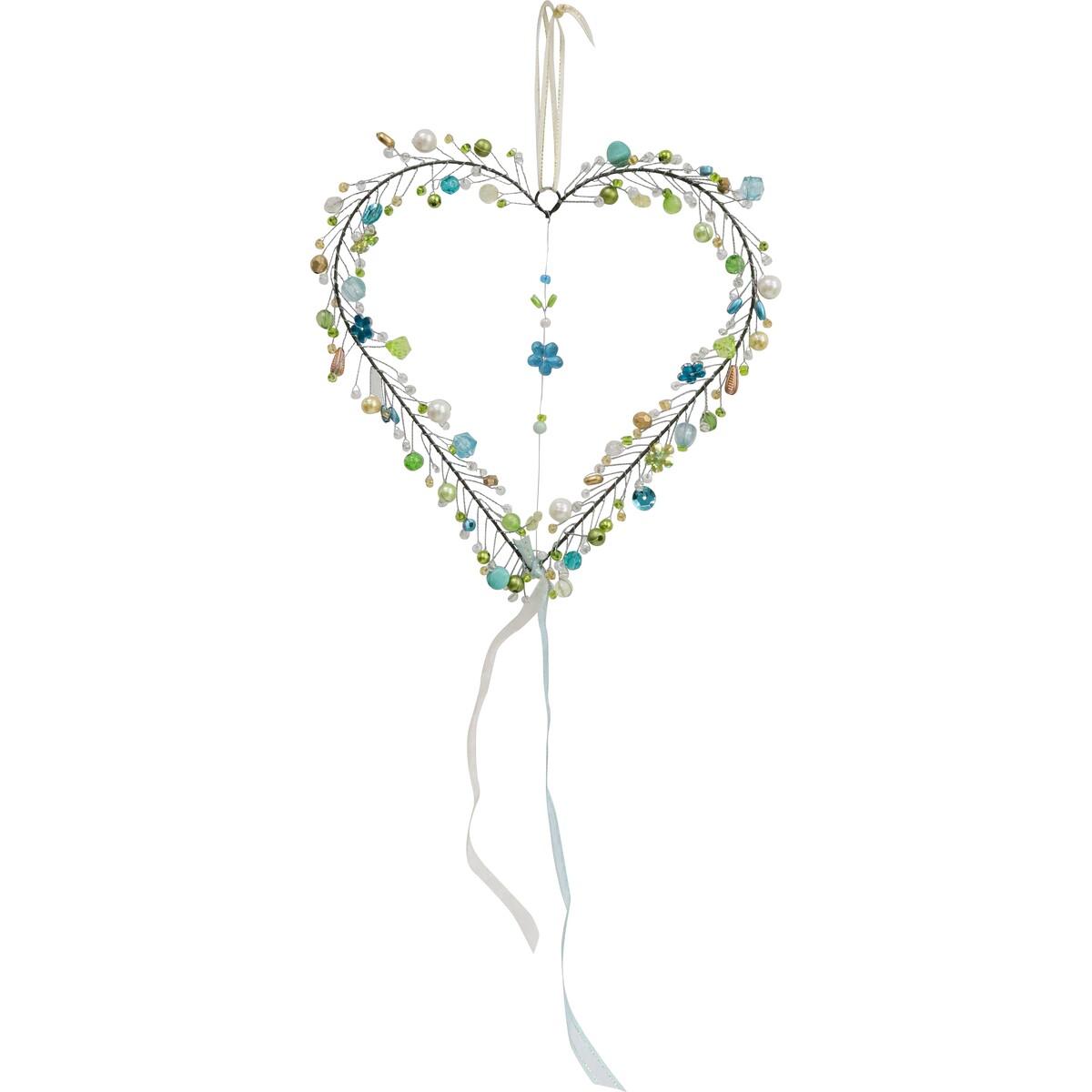 We know how challenging it can be to find décor pieces that make a quiet statement, and our Beaded Heart Breeze brings just the right balance of style and heart (no pun intended). We designed this 17x.5x17cm decoration with serene cool tones and fine details to add a touch of gentle elegance to every space. The delicately hand-twisted wire frame, cool glass beads, pearls, and dainty pastel-green clusters are made for spaces that need that soft pop of calm - and each one is finished with layered ribbons for a subtle floating effect. And we think this is one of those handmade treasures that works beautifully in gift shops, boutiques, even romantic or coastal displays - the sort of piece people want to take home for themselves or use as a special gift. The unique colourway goes with Scandinavian, Hamptons, beach house, boho or classic displays - it makes a thoughtful new baby present too. Please note: Every piece is handmade so there will be slight variations in the size and shape of the beads or the shape of the heart frame itself.