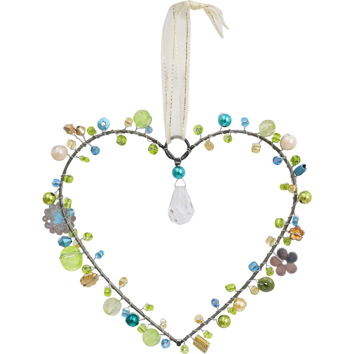 There's something really lovely and cheerful about our Beaded Heart Heavenly. At 10x.5x10cm, it's a great piece that draws the eye with its playful shape and medley of blue, green, gold, and pearl tones - each bead carefully chosen to create that uplifting feel. It’s even more special when you realise it’s hand crafted with wire, glass, plastic, pearls, and finished with a ribbon for easy hanging. That hand-made touch means each one is unique in small ways.