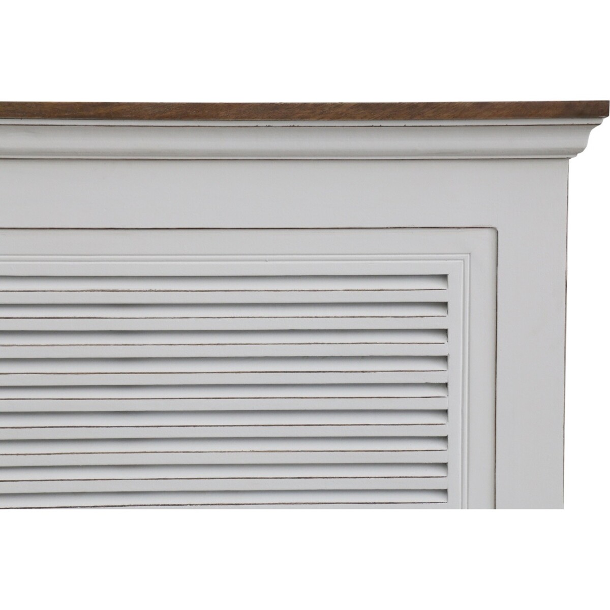 This mango wood head board adds a handsome dimension to the bed and creates a look of colonial period with its shuttered door effect in the design. The white panted head board has a fine element of age that makes it give the room a desirable shabby chic and vintage appeal in a modern sort of way. Add it to the plainest of beds and feel the solidity of its design create a different look in the room. The mango wood will be solid through its usage and allow you to place pillows, cushions and get your bed to look and feel more comfortable. Just the right angle and size to lounge against. It could be added to shabby chic beds to wrought iron ones or to regular wooden ones. Will also be conducive to modern contemporary homes and with vintage look rooms. The height of the head board is 110 cm and the width is 197 cm.