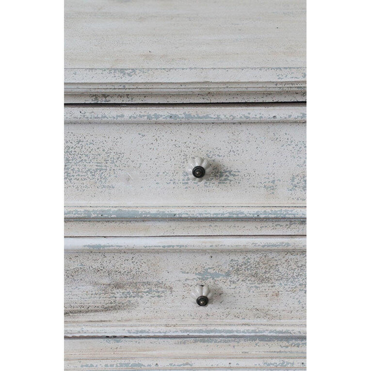 The beauty of things shabby chic lies in its intrinsic ability to allow a combination of your choice in muted colours helping you add colours, textures, age and even the most incompatible looks into the same frame - and this bedside table would do just that. Great for an informal look bedroom, it can host all of your bedside needs on the table top while also giving you access to storage in drawers. A soft coloured bedside table with lots of elegant features.
