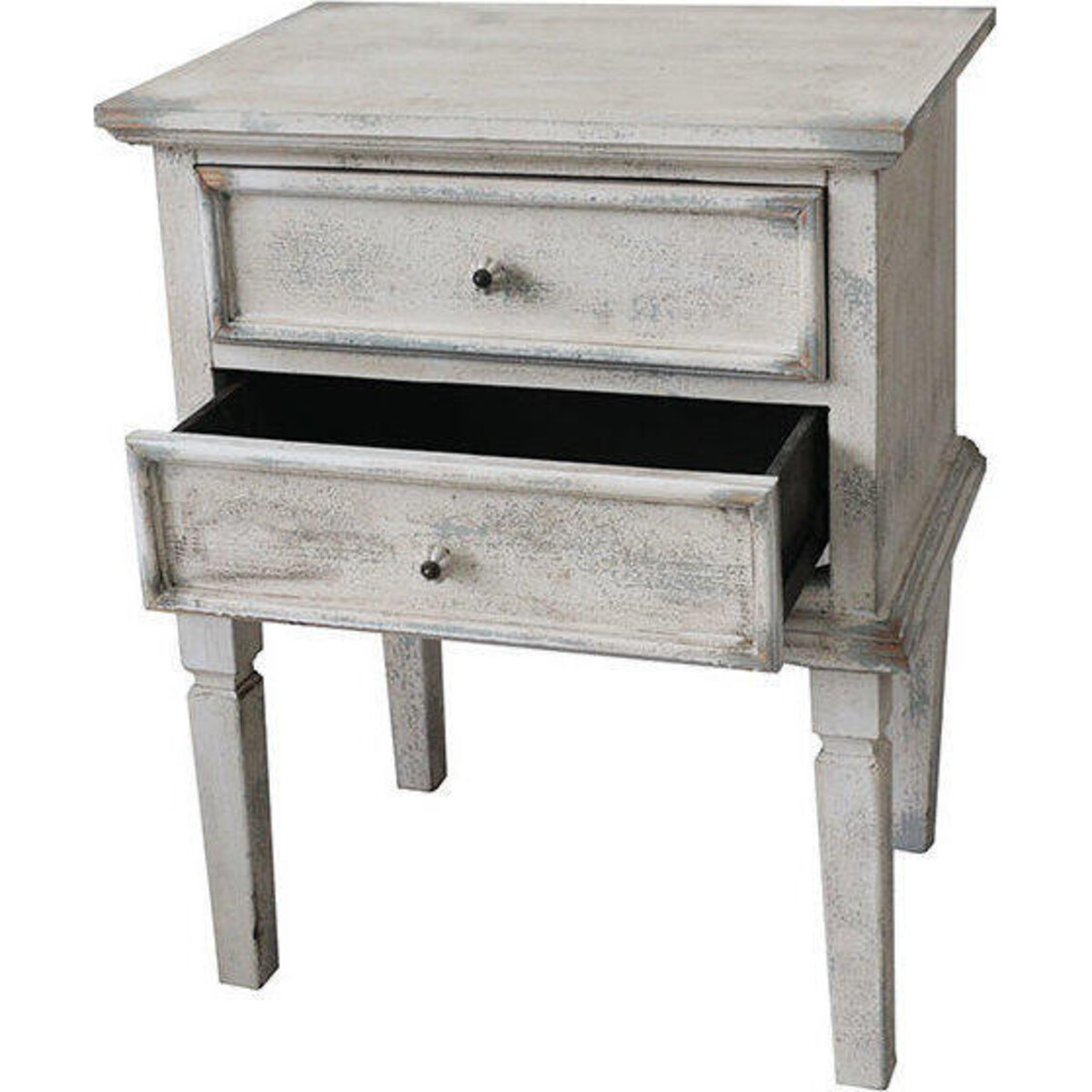 Steal this deal from Lavida - the people who have curated the finest line of modern day furniture choices and this season they revive the passionate love affair between homes and shabby chic style. This bedside table will look stunning next to a white wooden bed covered in soft coloured drape. Place a vase topped with fresh flowers and your room will fill up with a huge amount of charm a The bedside table has been carefully worked to give it this shabby appeal. Made from strong and sturdy wood, its pale blue colour, the two drawers with deep spaces for all kinds of storage, will make it most useful in your bedroom. The sturdy structure, the low fuss design and easy maintenance f such pieces makes them very popular in the home furniture ranges. About 86 cm tall and 68 cm wide makes it a large table top space on offer. Ample ground clearance makes it easy to clean the space more easily. Sturdy and well - designed its tiny details will amaze you with its intricacy.