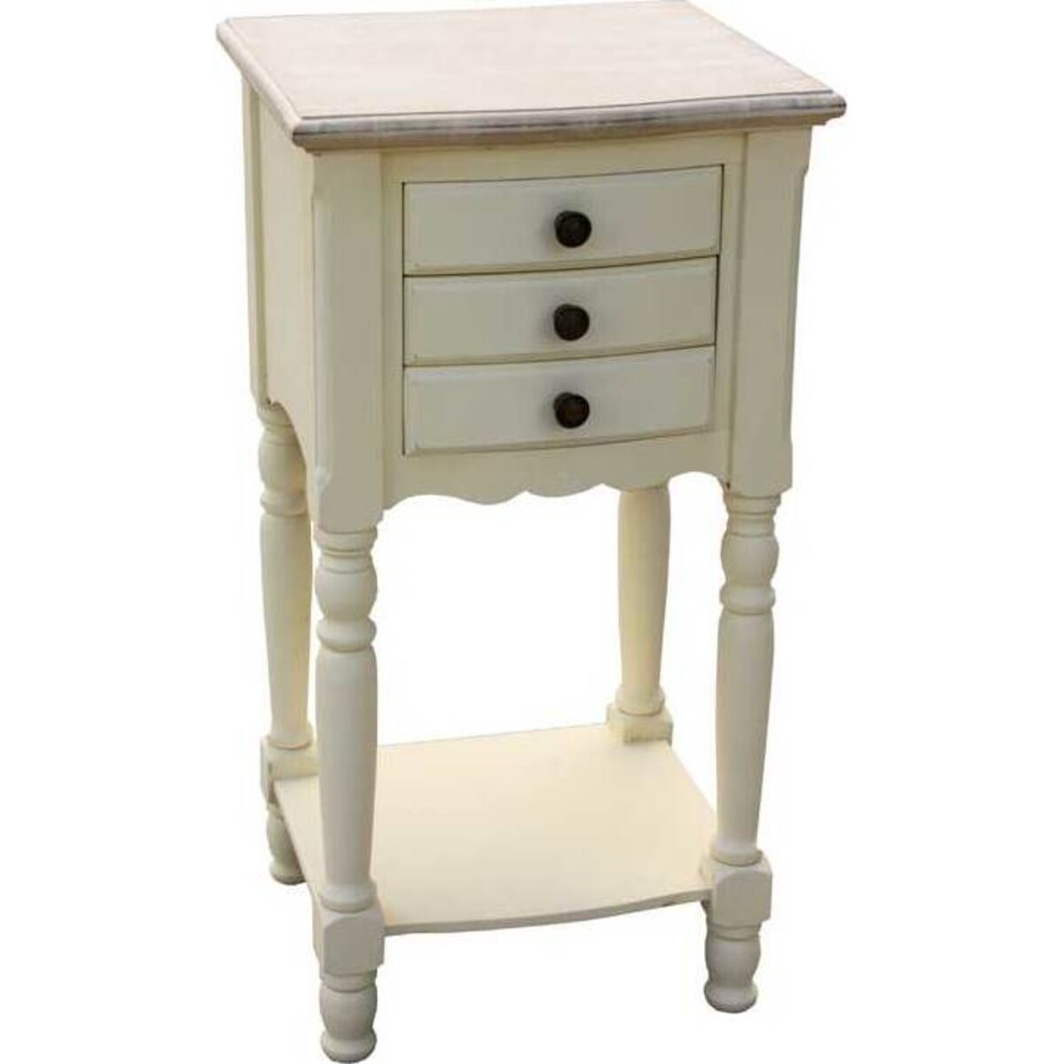 Introducing the Marlon 3 Drawer Bedside Table from Lavida, which is not only beautiful, but the solution to your clutter and design problem. This lovely white bedside table consists of three drawers with black knobs, elegantly carved legs, and a shelf underneath for added storage. You have all the space you need for all your items, and you can even get a table lamp so you can stop tripping over the floor lamp. Isn't it great when a single piece of furniture can do so much?