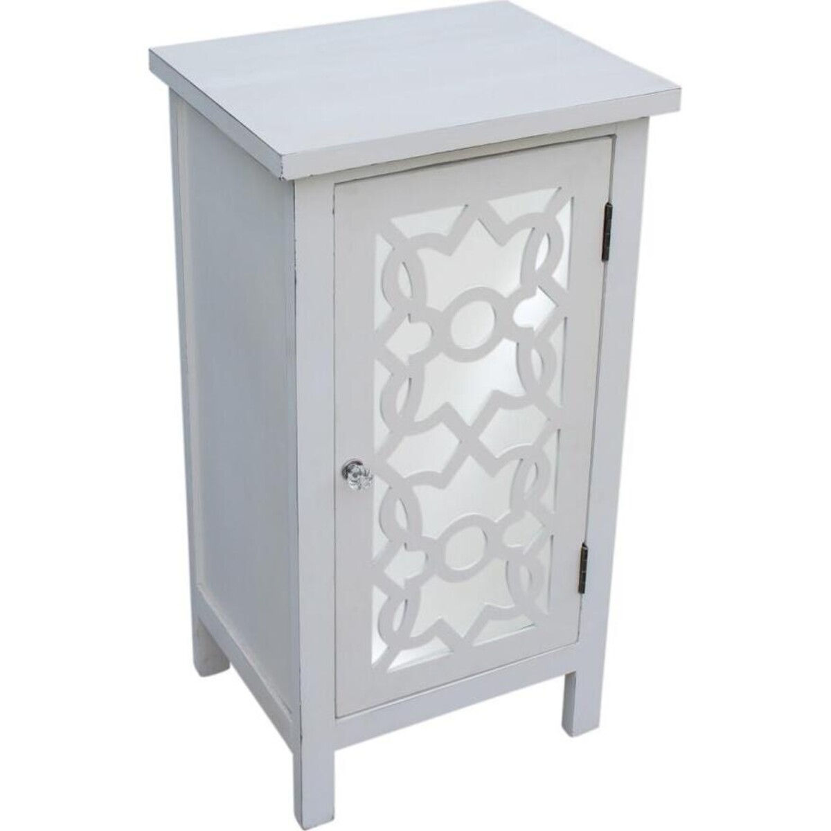 The grey colours on the top is soft, met there in the languorous presence of the bedroom by the glitter of mirror that makes up the outer side of the lower cabinet. The pattern n it setting it to a look much higher sin style. Add it to your bedside, top it with a bedside lamp or simply use it for stor9mng your bedtime accessories, - maybe your book, the meds you need on waking up, or your little clutch of keepsakes that makes you happy each time you rifle through them. There is much joy in having a table by your side in bed, that can hold all of your essentials and not take up too much space either. The proportions being 79 cm in height and 42 cm in length and about 34 cm in width makes it an amply large yet natty little number for the space that is meant to add more convenience to your relaxation time. Super ornate pattern and single door cupboard adds to its beautiful finish.