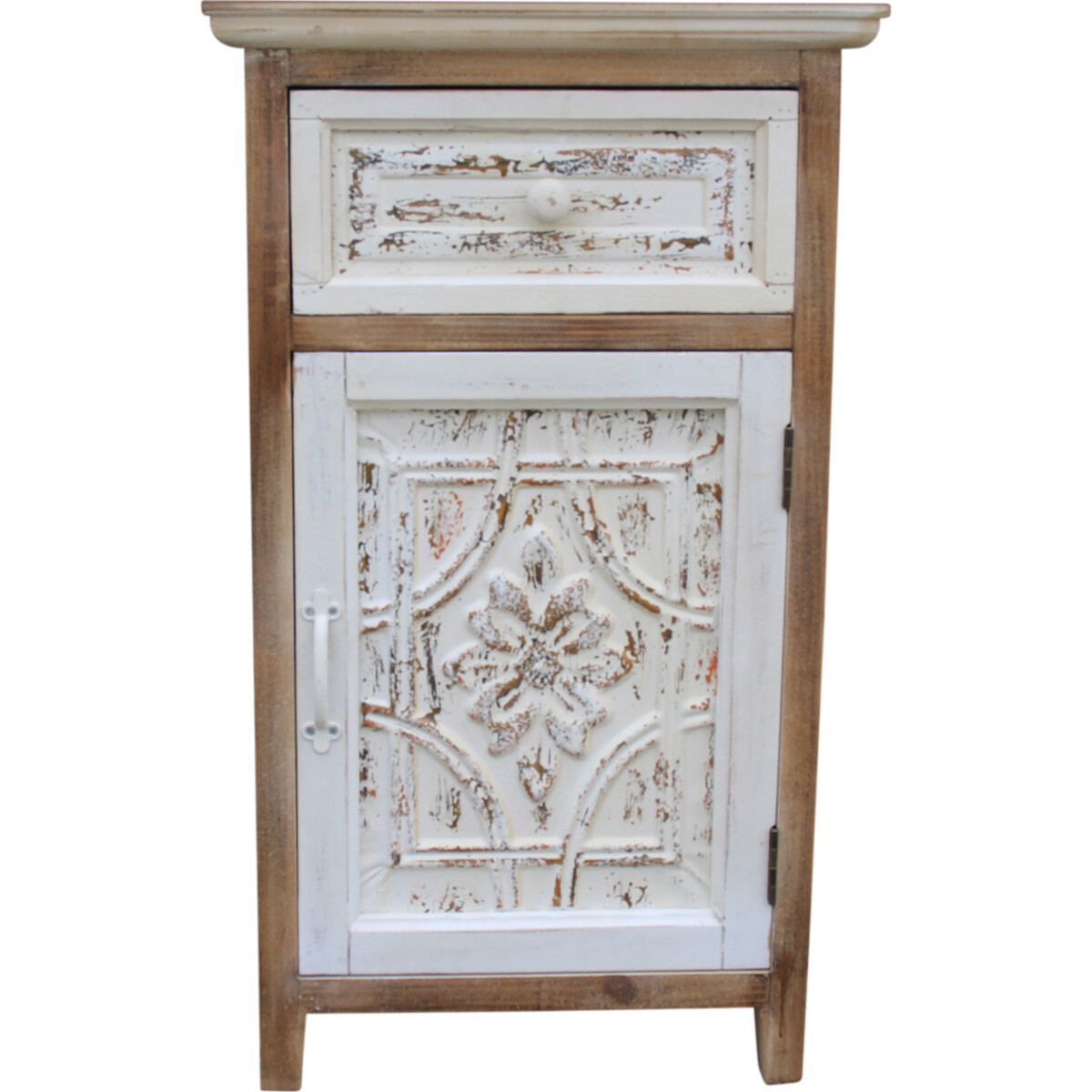 Bedrooms are essentially creating the most convenient space for you to retire to and when in bed what could be more delightful than that all accessible bedside table that hold all of your essentials that you always seem to need when in bed - perhaps your bottle of pills, your spectacles, the book you have been reading or that tin of mints - who can tell what all we could be reaching out for! Here is that stunningly elegant bedside table that allows you adequate storage as it comes with drawer on the top and large cupboard like cabinet space below that. The uniqueness of the wood coloured combining with the white of the rest of the design makes it all the more desirable to add that touch of furniture glamour to your room. Add that vase of garden - fresh bloom atop the table or light a scented candle when the evening draws closer and see the beauty of the bedroom delight you further. Sturdy, spacious and adding ample table top space for your convenience makes this a great pick from Lavida.
