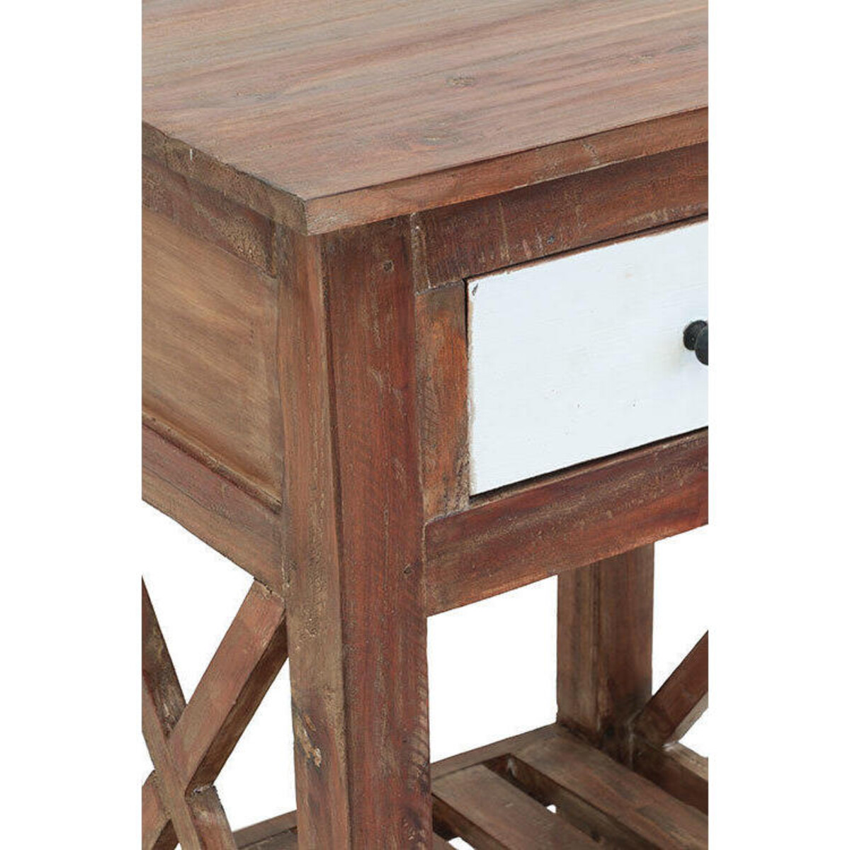 Bedtime is not just about sleeping but also finding close to hand all that you could need while relaxing - so be it a bowl of your favourite snack, a book you would love to read in bed and of course the source of light - all of them need to find a gracious enough host and this table fits the bill amply. Made from sturdy mahogany wood, it has a rectangular solid wood top with 50 cm length and 41 cm width. The lower shelf is railed with perfect means to hold your reads and the top adequately large for your other needs. A small drawer could hold your tinier needs like sewing kits, medicines and your spectacles. There is a concern for adding more storage here and that in a sense is its greatest USP. Add a flair of colonial style to your bedroom as this table has the perfect antiquated looks with a touch of vintage rusticity to grant you that. Made with high quality wood, its unpolished looks makes for a superb means to build in a heritage feel.
