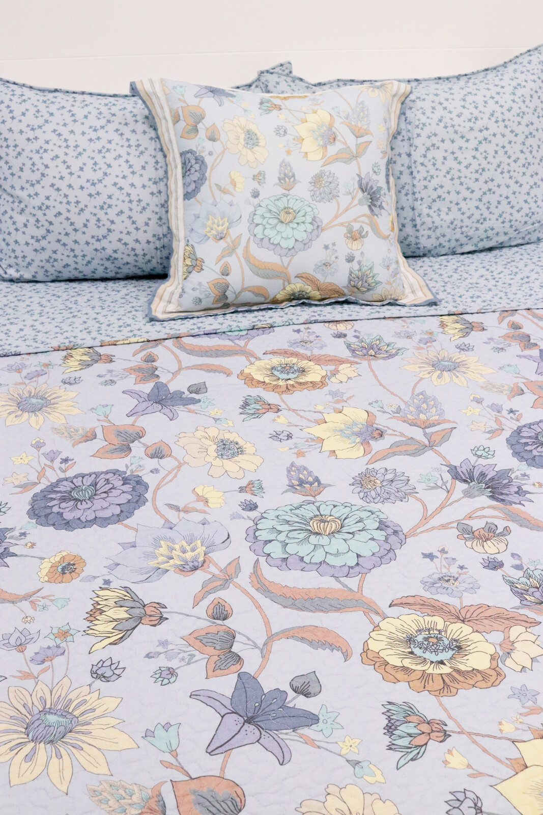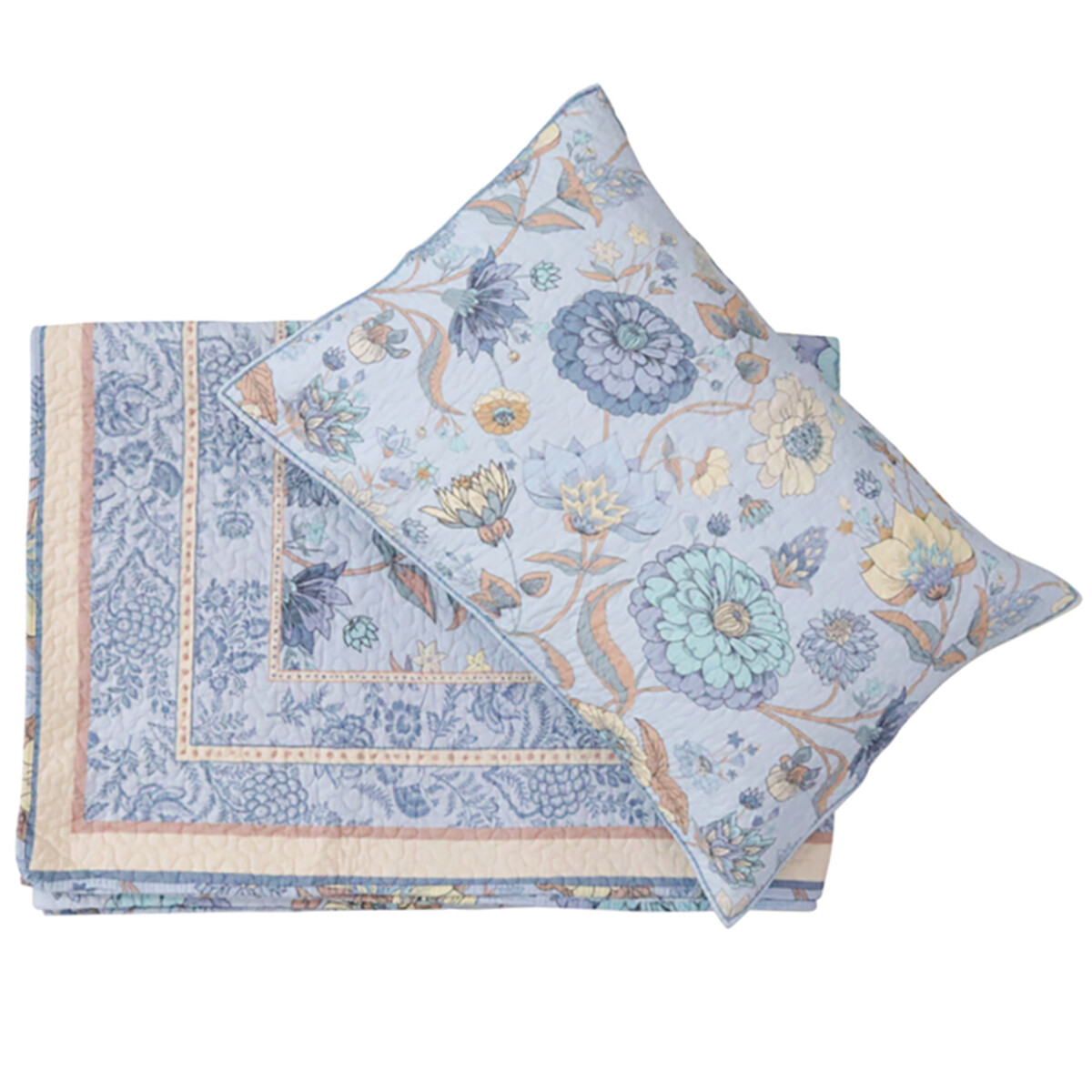The Bedspread Set Cottage is a bit like a window to the country side - it brings a sense of warmth and comfort with its soft blue pastels and subtle peaches that make any room feel like a cottage in the country side. It’s designed on quilted fabric, so it brings that old world charm, yet it’s machine washable (so you don’t have to worry about it being high maintenance!) There are hints of yellow and green on the borders that add some depth, especially against the intricate patterns. It’ll work well with light woods and even cream or off-white furniture. It comes as a set - one bedspread (230 x 250cm) and a matching pillow case (50 x 70cm), both of which can be machine washed on a gentle cycle. The fabric is 100% cotton on the outside and a blend of cotton and polyester inside for added softness and more durability.