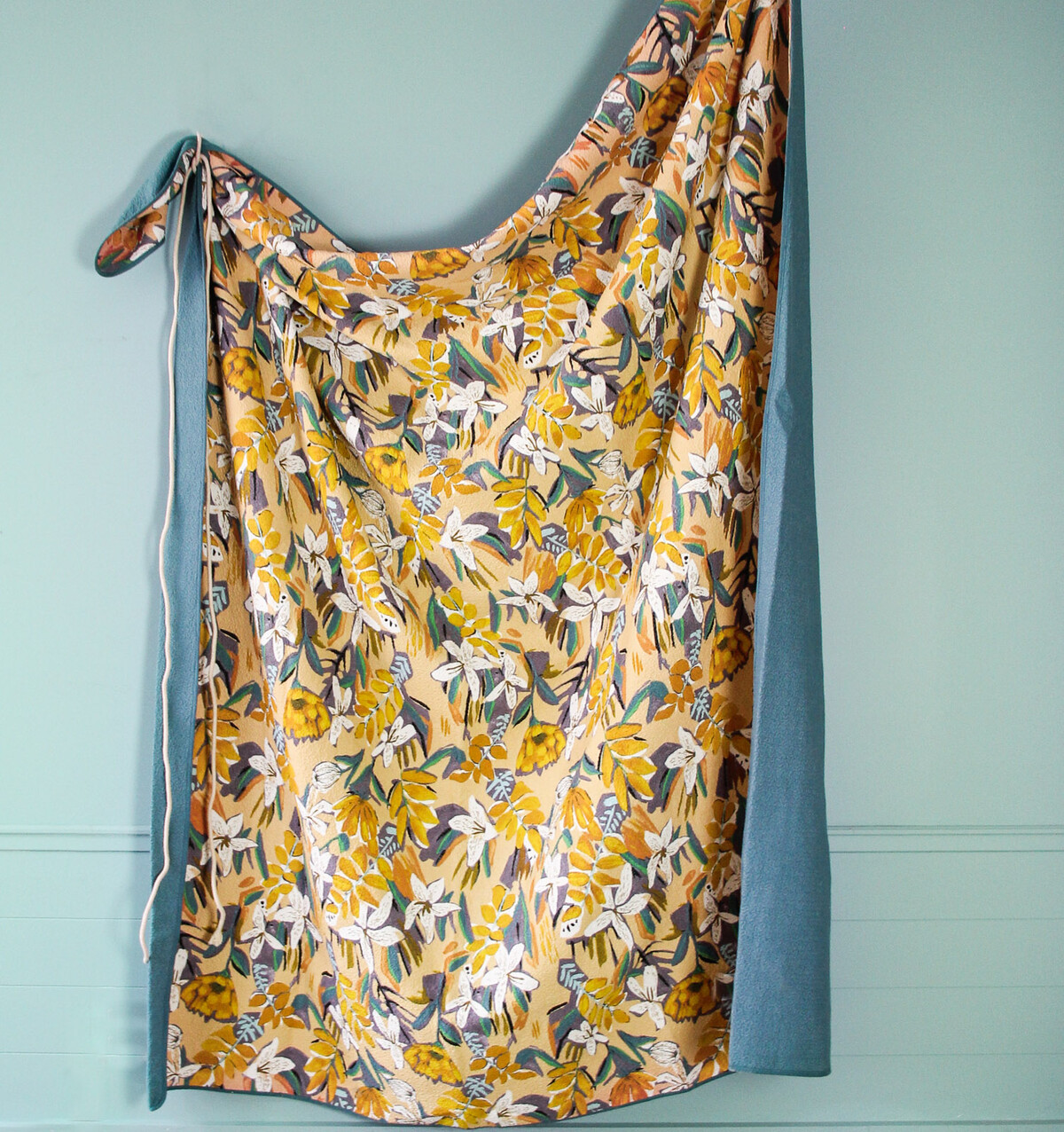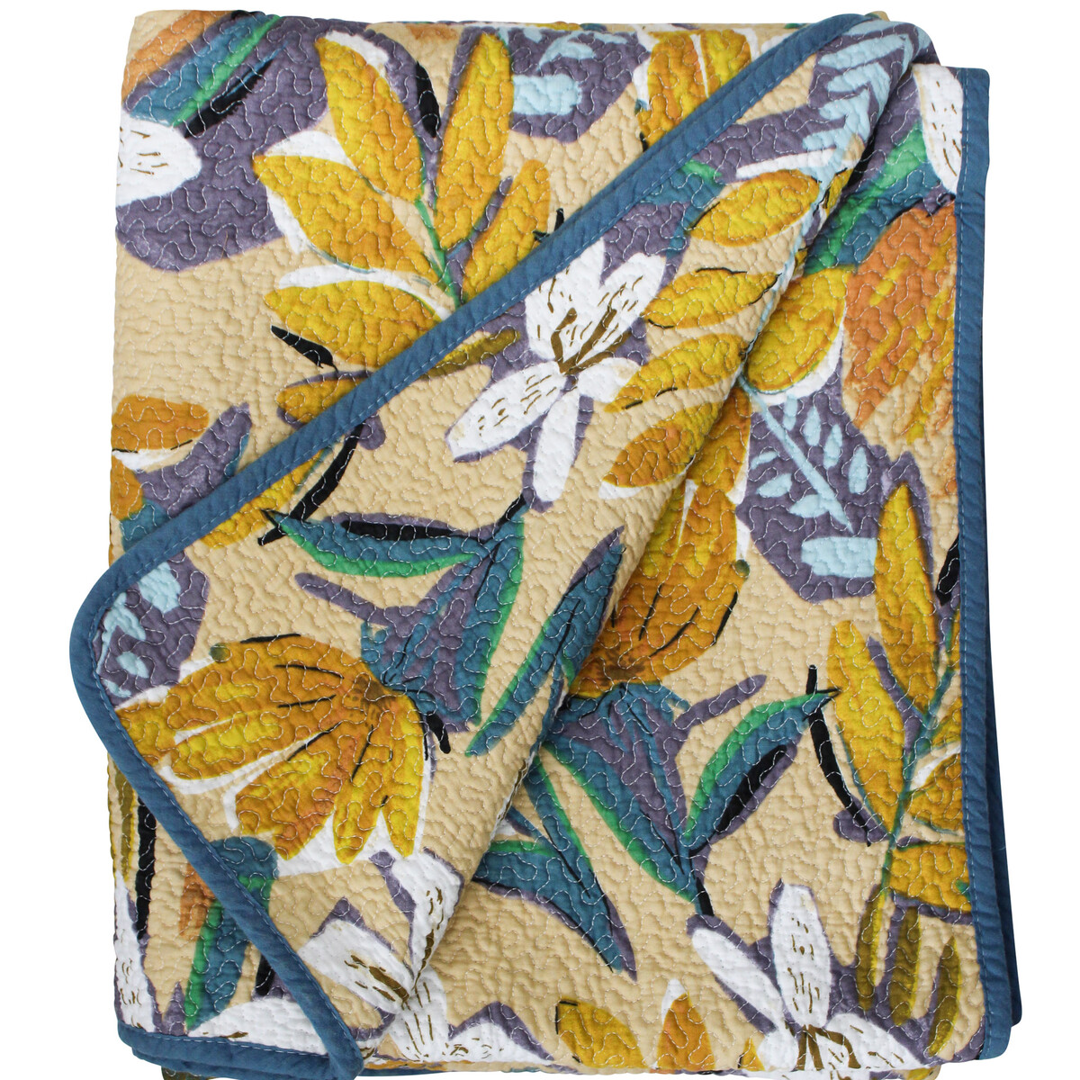 The size is generous - 230x250cm - so it’s perfect for double beds, queen or king mattresses, or even as a throw over large couches in living areas. We love the muted blues and muted mustard yellows in this nature-inspired print with delicate white blossoms that add just a touch of class without being too much. This is perfect for homes in the city or countryside, businesses needing beautiful bedspreads that last, or anyone who wants something unique and offbeat.