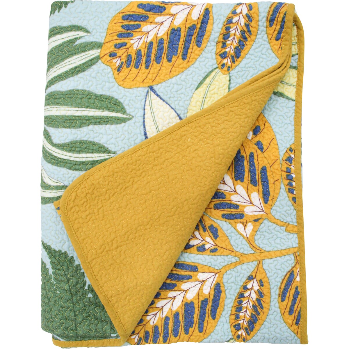 We’re definitely partial to a big, bold statement throw - there’s just something so inviting about unfurling one across a bed. Our Bedspread XL Tropical really takes that home for us. It’s bright and calming at the same time - the striking oversized print pairs leafy greens, mustard-gold, and fresh aquas in a way that brings that tropical retreat feel right into any bedroom. Or sunroom. Honestly, we have seen this work draped over sofas as well - we’d never say no to versatility. Made with a 60/40 cotton-polyester blend, it feels soft yet structured and has just enough weight to sit beautifully on beds up to king size (the 230 x 250cm size is generous). It’s machine washable on cold, tumble dry low, and takes an iron in case anyone likes their bedding crisp. That soft yellow backing is just magic when flipped, too - perfect for home decor customers who love change without extra clutter.