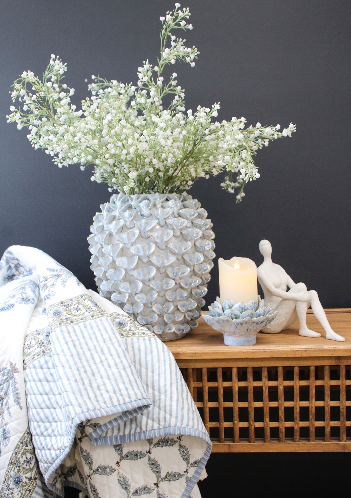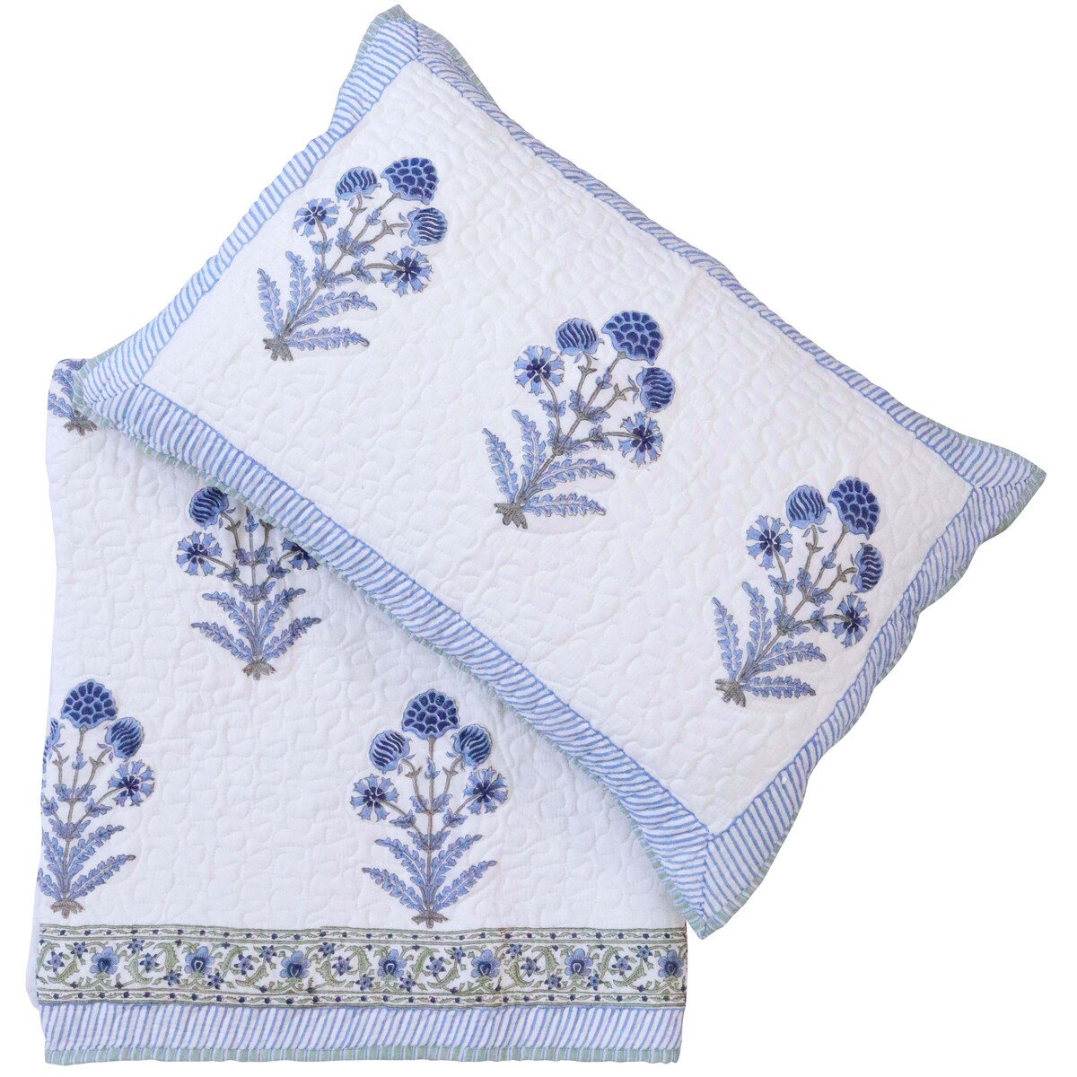 Perfect for gifting, the Bedspread/Quilt Set Layla is not only a functional bedding item but also a piece of decor that speaks volumes about sophisticated taste. Its exquisite hand block printing ensures no two pieces are identical, adding to its allure as a truly one-of-a-kind product. Easy to care for with a gentle cold water wash, it retains its charm without the fuss. However, to maintain its pristine condition, avoid direct sunlight exposure while washing and displaying. Add this remarkable piece to your inventory and captivate your discerning customers with its unmatched beauty and versatile appeal.