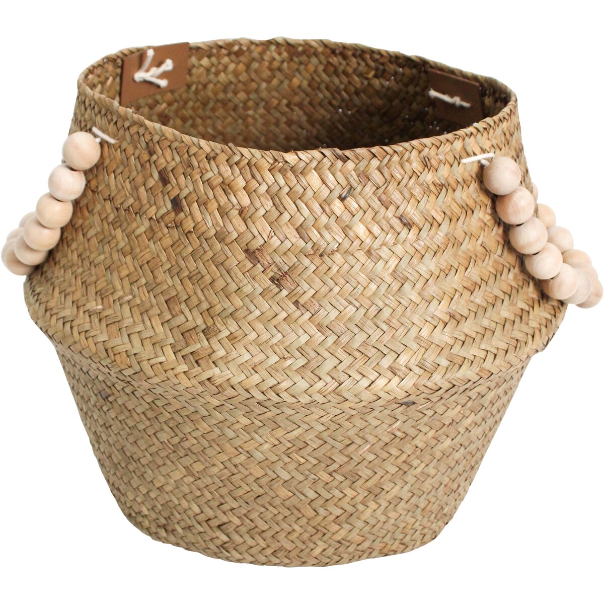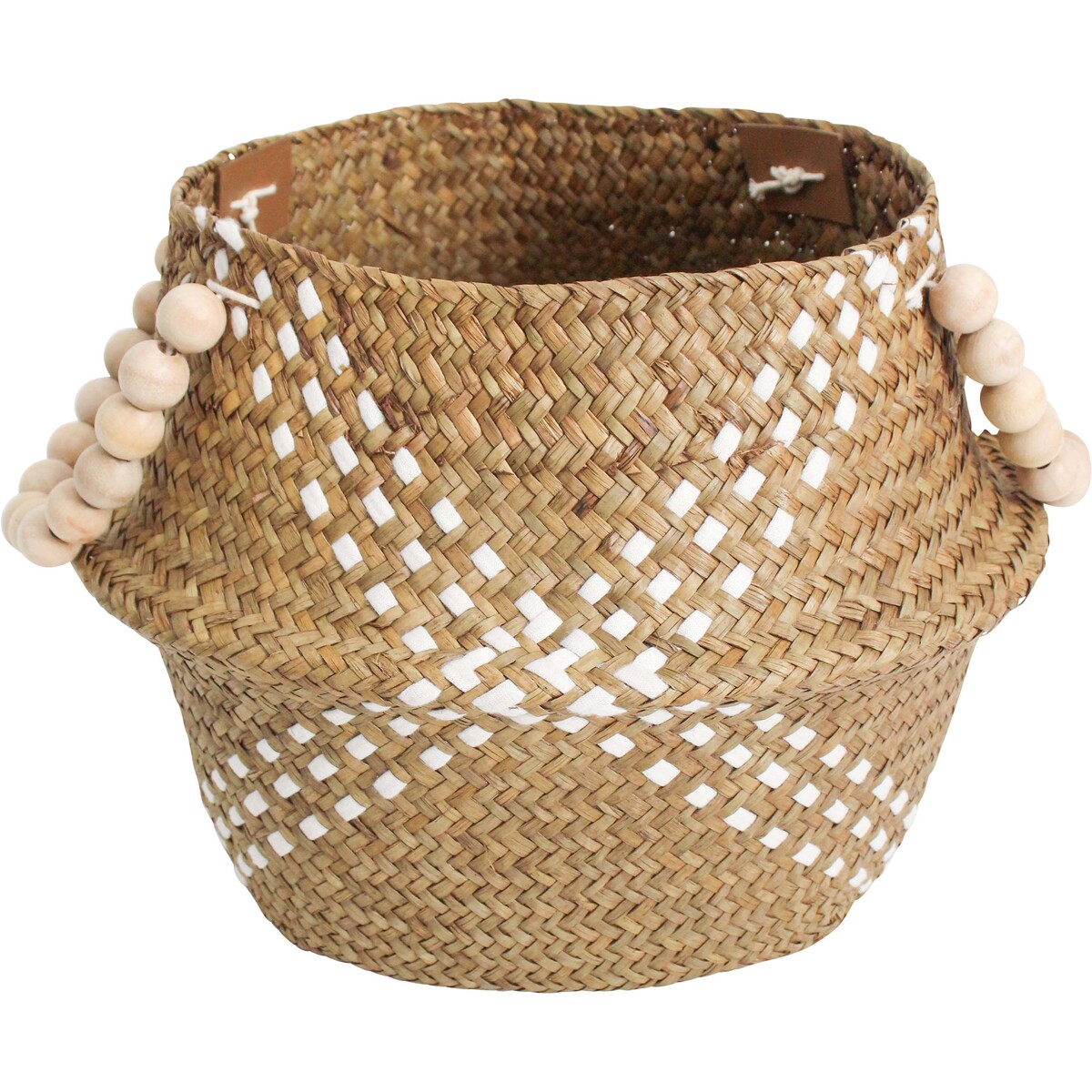 A charming belly basket to pop up the space. Made of super strong and sturdy straws, this piece promises to last long. Likewise, it'll maintain its stunning appearance even after years of use. This high-quality product fits a sustainable lifestyle. Our belly basket comes in handy for storing and carrying a variety of items. This piece is great for organizing shoes in the entrance, magazines and cushions in the living room. Not to mention, it's great for organizing stuffed toys in the children's room. What's more, one can also use it in the kitchen as a fruit basket or to store goodies. All in all, our belly basket is sweetly versatile and functional. Whatever the need, Belly Basket TwoTone/Nat Beads is designed to serve them all.