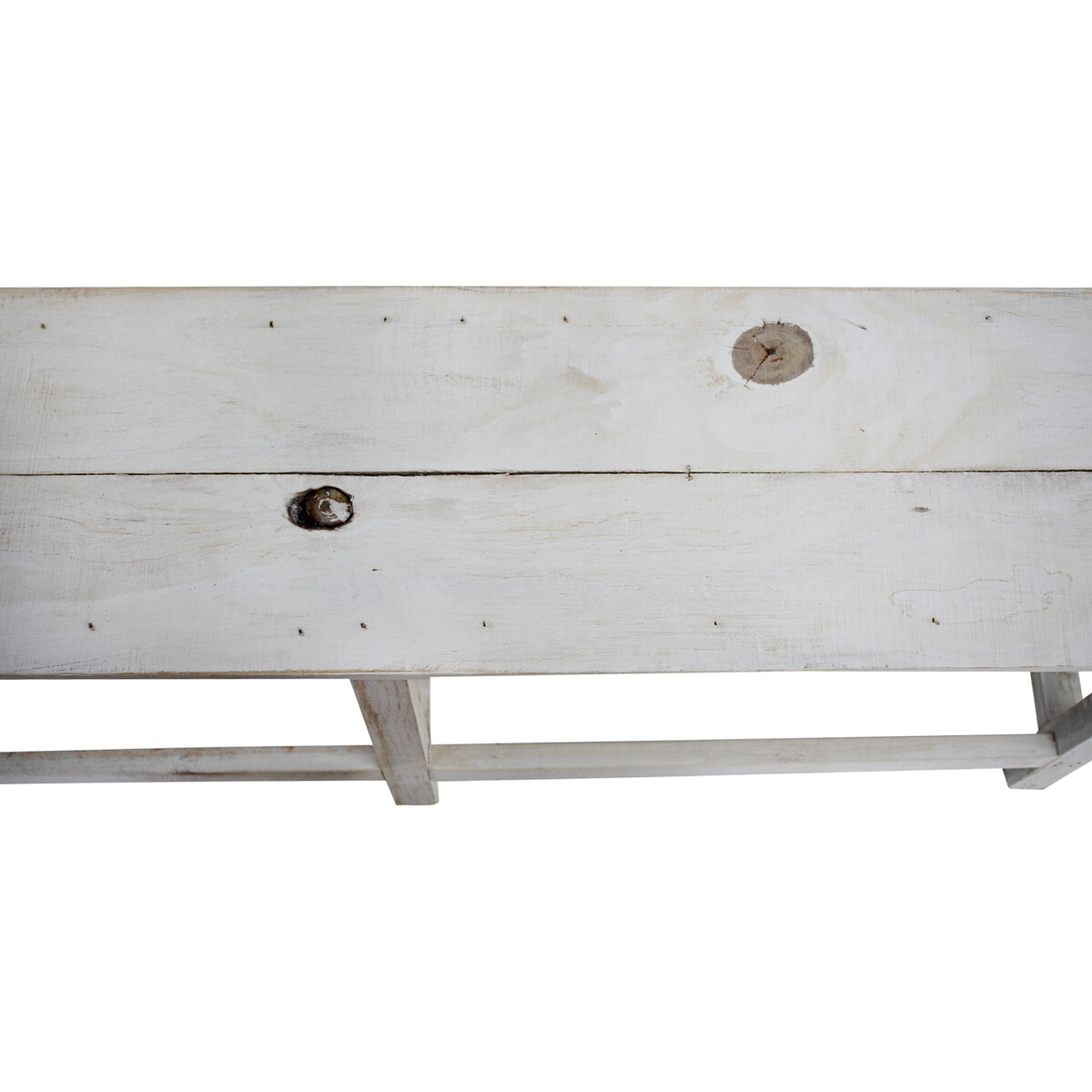 Crafted from wood with a serene whitewash finish, this bench exudes a calming presence that effortlessly complements a range of décor styles, from country-style homes to contemporary lofts. Measuring 120x25x40cm, it's the perfect size for any space, offering both functionality and aesthetic appeal. Its sturdy construction reflects a commitment to quality, ensuring it can stand up to daily use while still maintaining its grace.