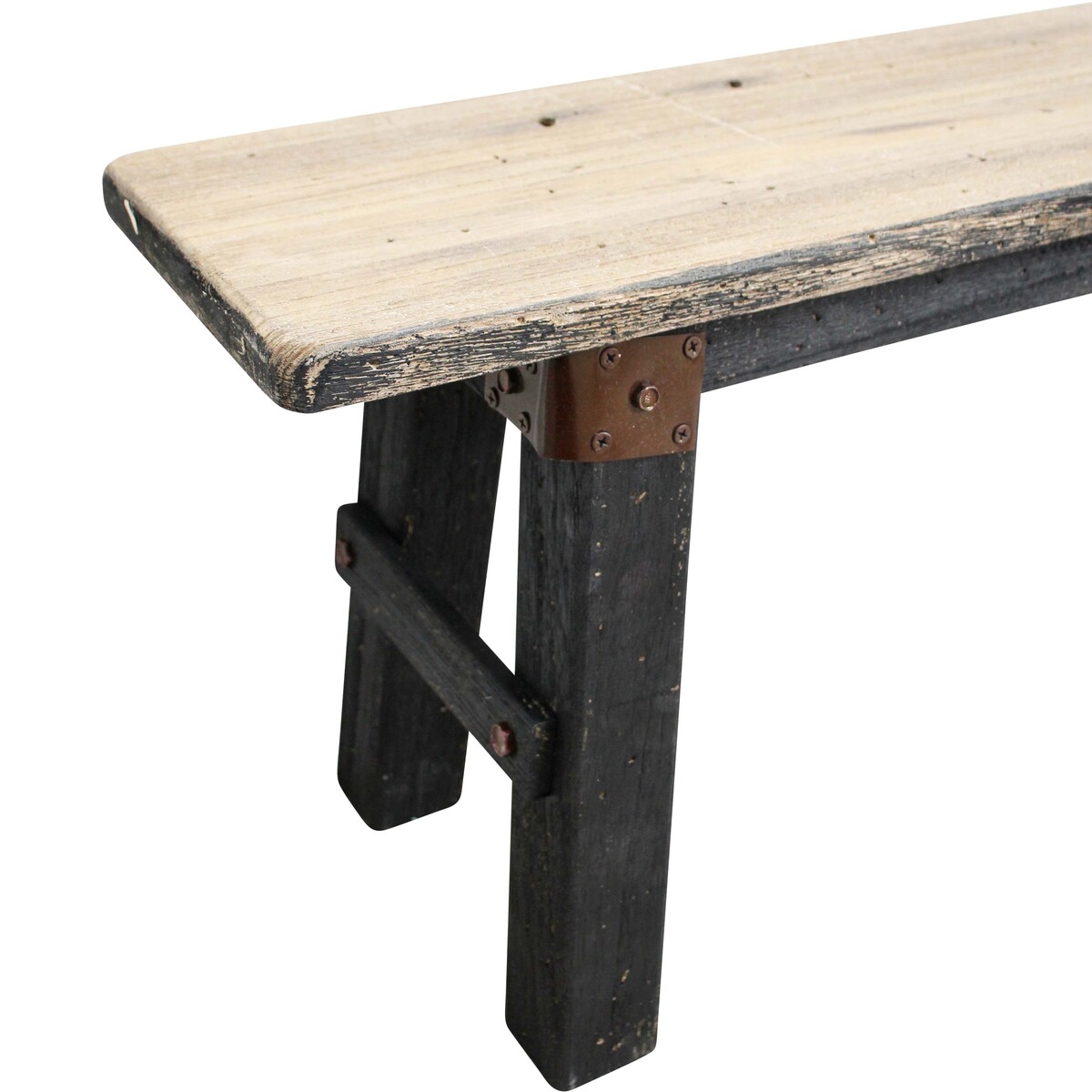 Elevate your retail space with the rustic charm of the Bench Seat Salvaged Ant Black - New KD, a piece that masterfully blends reclaimed timber with robust metal legs for a look that's both timeless and sturdy. Measuring 113x24x32cm, this bench's understated black colour and authentic materials are sure to captivate customers seeking a touch of vintage elegance. Stock this bench to offer shoppers a sustainable furniture option that marries style with a story.