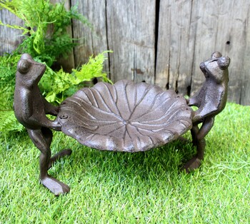 The bowl stands at 21.5x14.5x14cm, features that lovely brown cast iron finish you expect from all our favourite garden ornaments, and comes with elongated limbs and big froggy eyes. The dish itself is scalloped to mimic lily pad edges and can go on to house everything from spare coins and keys by the door to actual bird seed for little birdies in the yard.