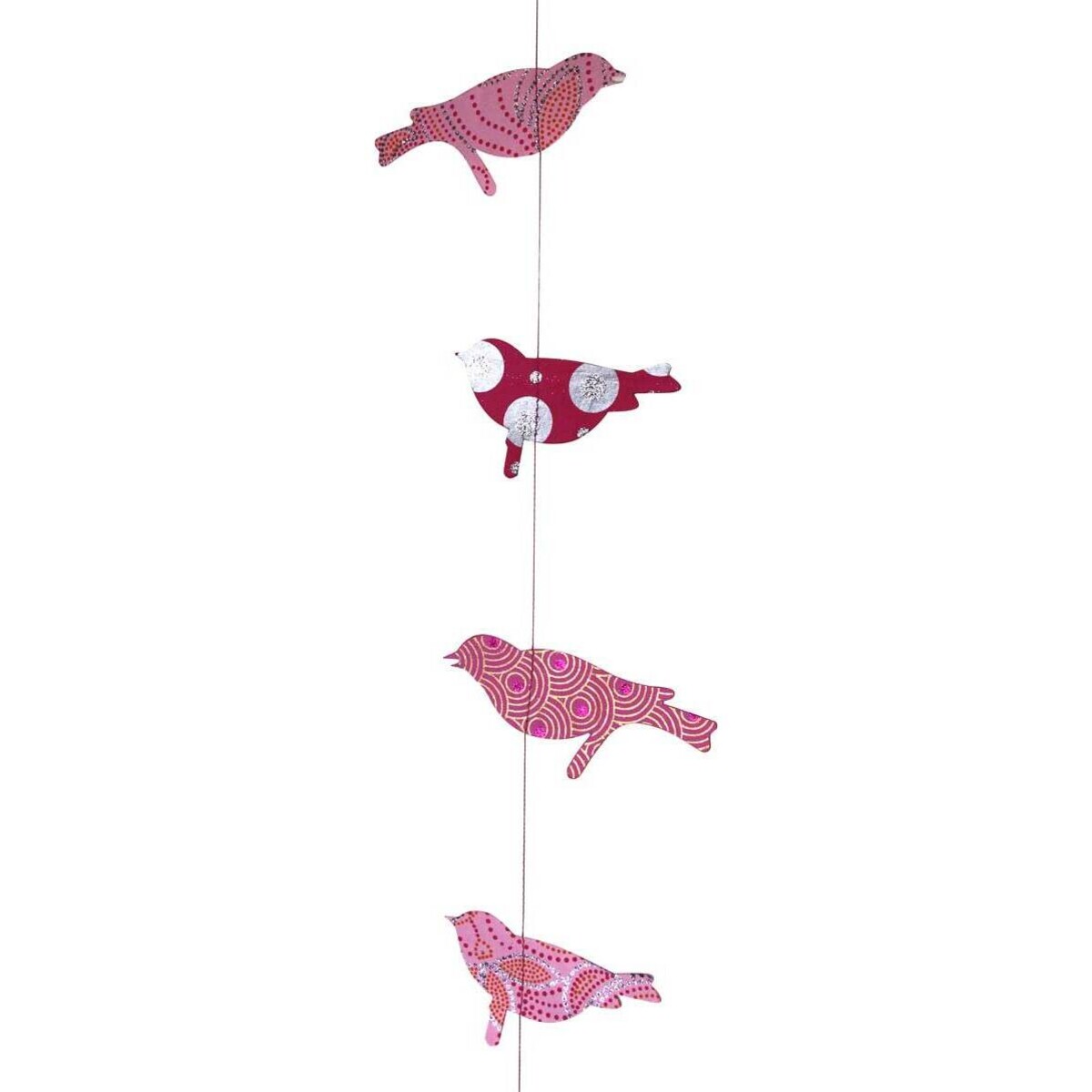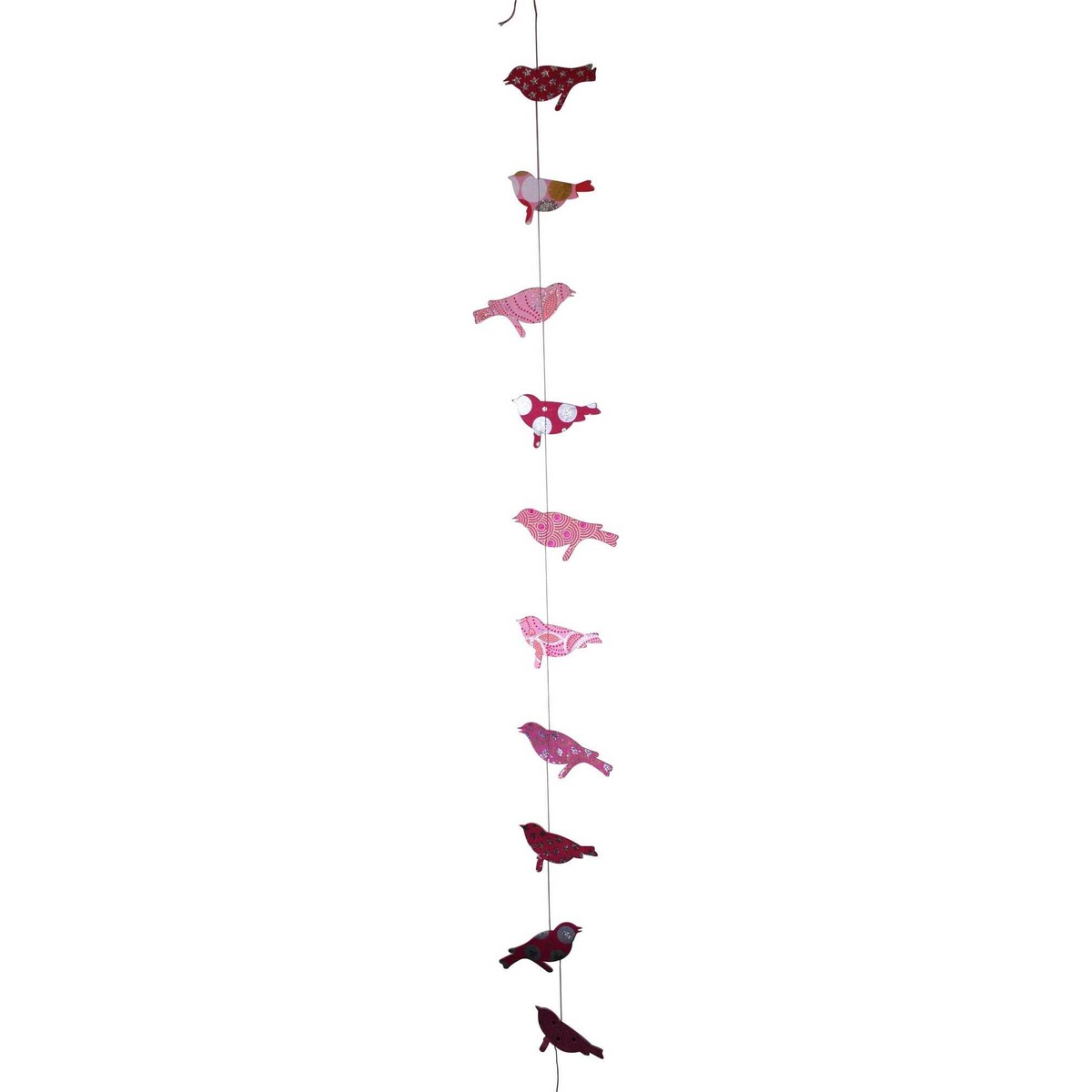 Bird Garland Pinks features a special art form that measures 13x150cm. It consists of multiple cuttings made using paper, which are joined in longitudinal form through a thread. Pink is the theme colour applied on the winged handicrafts. This offers them a resplendent expression that would suit application at various jovial occasions, especially where children feature a lot. Parents could get several of these pieces for decorating the bedrooms of their young ones. Day - care centres may also find them of help in the rooms where children play and sleep. In addition, they may be used for general - purpose decor functions in any home.
