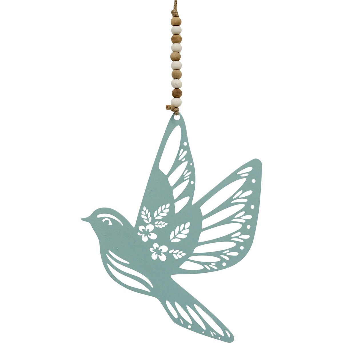 Constructed with metal for a long-lasting and sturdy effect. Its pastel green hue gives this ornament a gorgeous appeal. The subtle tones make it blend in and stand out at the same time. Featuring floral essence that gives it a feminine charm. Bird in Flight Corfu is a trendy design with striking detailing to express careful aesthetics. This piece would make a great gift for loved ones and friends during a housewarming party to wish good luck. Plus, it's a display of kindness and support. Affix this ornament on plain furniture, walls, and surfaces to bring a touch of life. It can also be used in a nursery or the children's room as a playful detail.