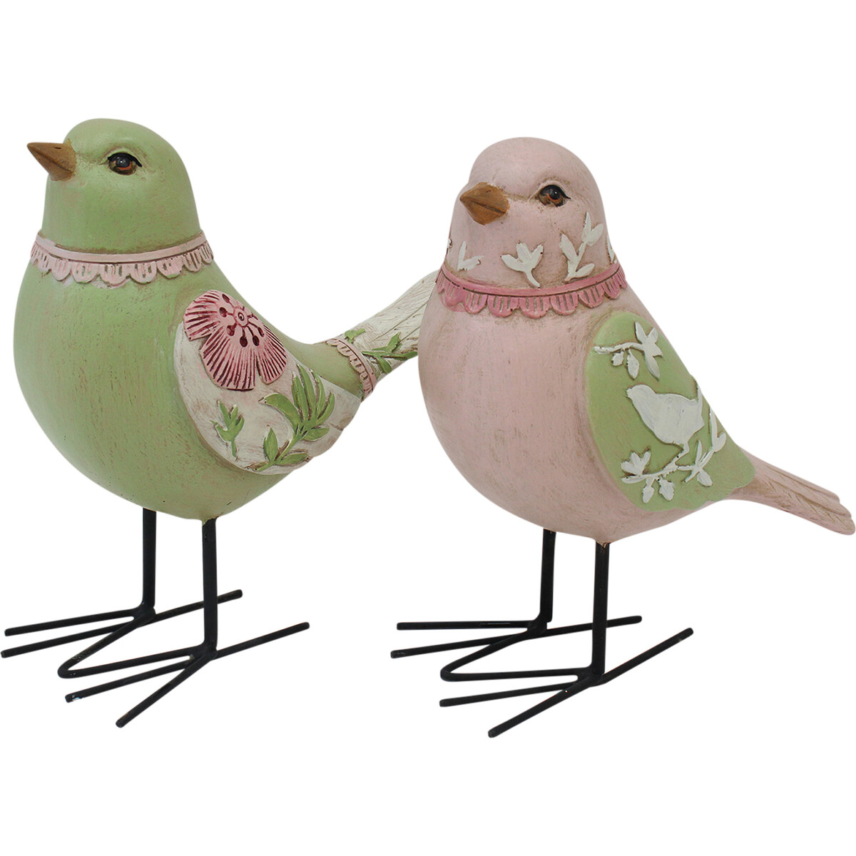 The attraction that people have towards birds is a result of the cuteness that birds generally possess and the symbolic association that often accompany these cuties. Contained in this Bird With Iron Feet S/2 are two bird figurines made through the artful use of top grade resin material. The first of the two birds is predominantly hued in a lovely pastel shade of pink hue with a touch of white and green while the second bird is predominantly hued in green with a touch of pink and white.