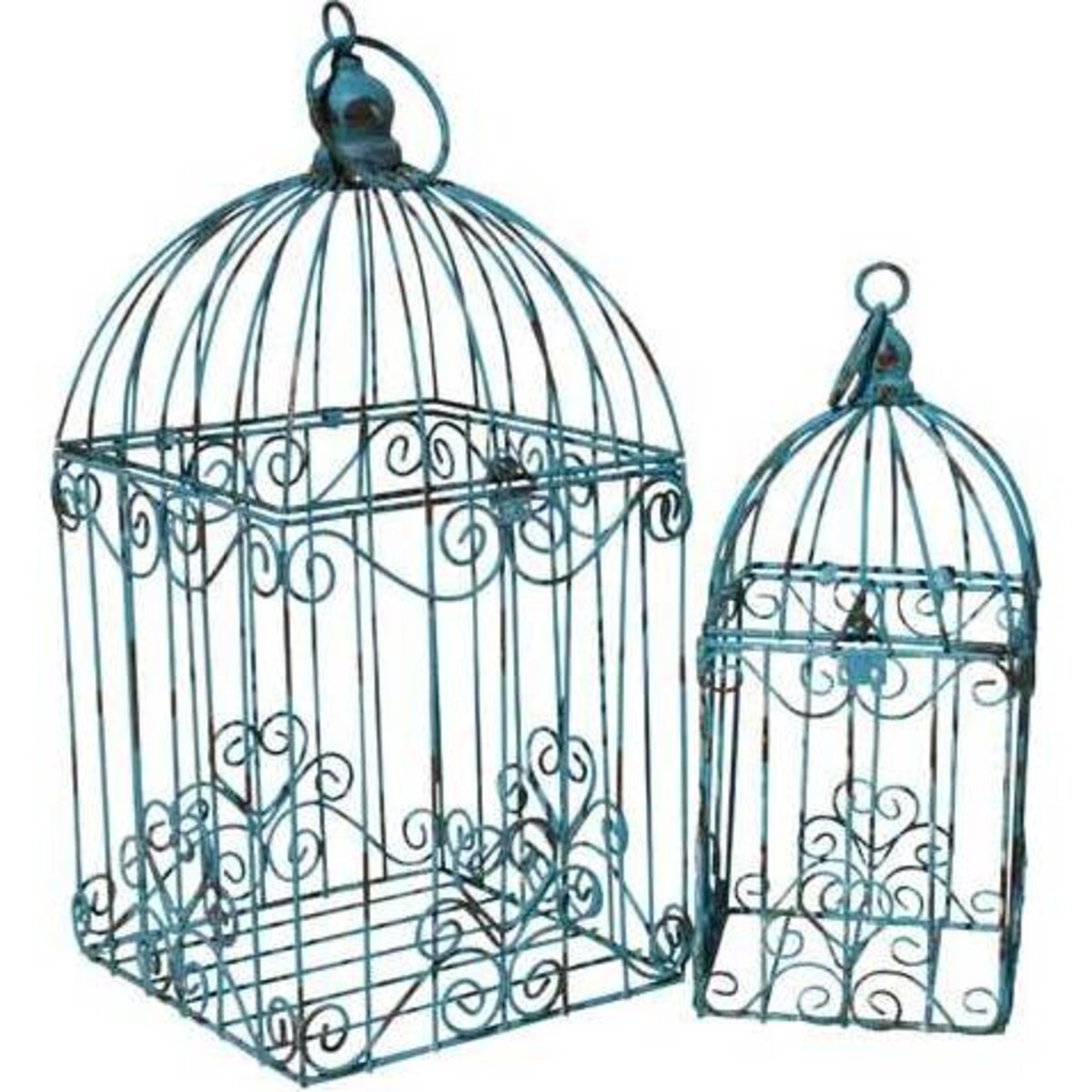 This set of 2 Blue Coil Birdcages are sure to grab your interest. They're of two different sizes _ one small and one large _ each with the same design of a curved top and a lovely horizontal scrolled design. At the top is a metal ring so you can easily hang this piece from wherever you desire, and the blue shading will add a vibrant touch of colour to even the most neutral spaces. Keep both for yourself or pass one onto a fellow birdcage enthusiast, but they're sure to look lovely in any home.
