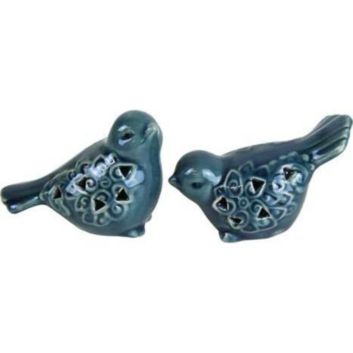 LaVida offers a nature - inspired ceramic accent duo with its Birds Blue Medallion S/2. This set of birds is rendered in smooth ceramic with a deep, ocean blue finish. Each bird is embellished with a detailed medallion pattern that is both raised and pierced through the ceramic for an elegant, yet airy look. Each bird is facing a different direction, one up and one down, for added visual interest and natural movement. These birds would be right at home perched on a fireplace mantel, resting atop a stack of nature books or enjoying the sunshine in a south - facing window.