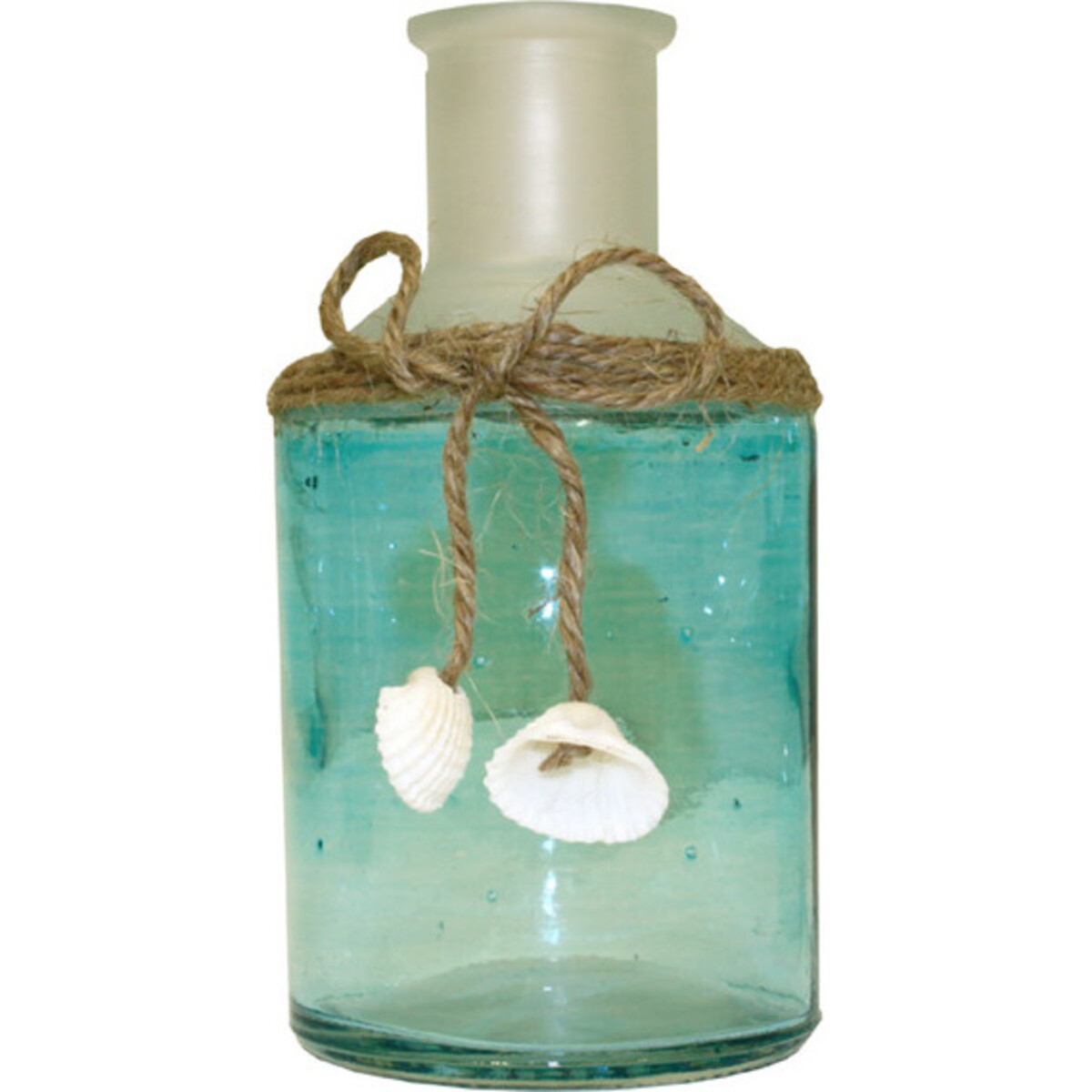 This pretty and aesthetically eye catching accessory is the perfect creation for a beachside themed visual design. It completes different types of venues in various interior ideas and designs especially with an aquatic twist. It is also an ideal giveaway option for special themed events or a simple gift giving idea. BlueSandwashed Bottle Tall is made from high quality and chic glass materials. It has clear and translucent effect. The bottle body is highlighted with soft shade of blue for an oceanic finish. The tall bottle with relatively hefty build is contrasted with the shiny white and shaped bottle top. It is featured with the sealed tight design for aesthetics and functional purposes. Topping off the aesthetics is the wrapped knotted brown thin rope accentuated with white shells at both ends.