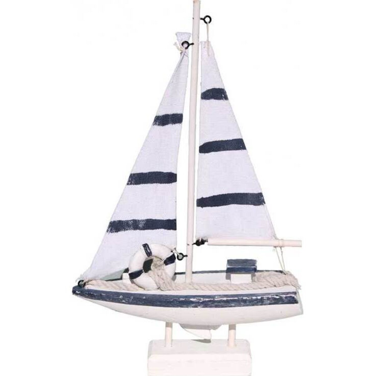 This small Blue Banda Boat is everything you could want in a nautical-themed decorative accent. It's large enough to easily be noticed, small enough that it doesn't take up a lot of space, and packs all the style you could want in a single item. The white boat features a navy blue border around the hull as well as horizontal stripes across its sails. For an added touch of style, a white and blue striped life preserver is seated on top. Put this on your mantle or anywhere else you can see it on a daily basis and it's sure to bring a smile to your face.