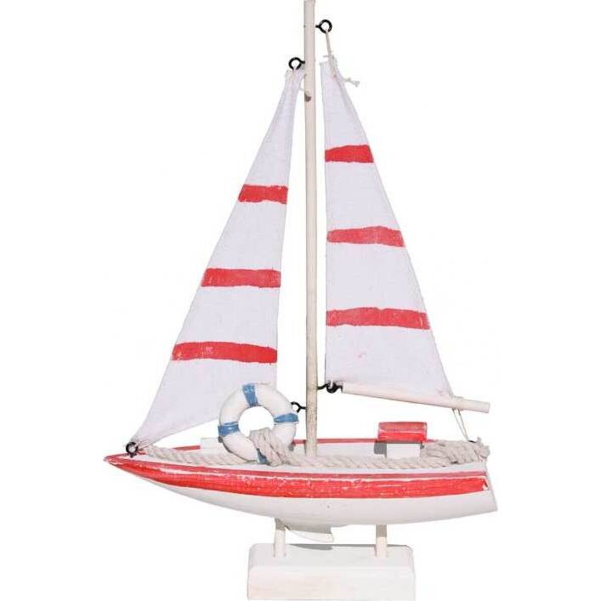 This small Red Boat Banda is just what you've been looking for, and it's so much more than a model. The white sailboat has a red strip along the boarder and horizontal stripes on the sails. As a finishing touch, a little white and blue life raft sits on top. Whether your home consists of coastal or traditional d_cor, this sailboat will make a lovely addition to your mantle, bookshelf, or to an outdoor table, and you'll love looking at on a daily basis.