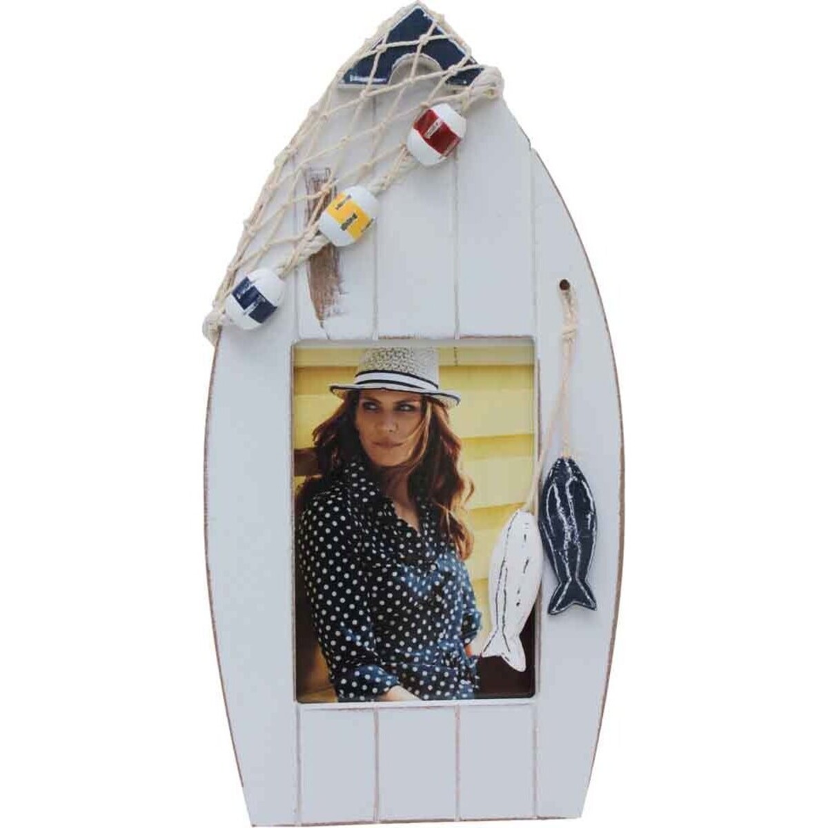 The body of the frame is large enough to hold great family pictures and fabulous individual shots taken at the beach, river banks, or basically everywhere else where there is water. The body of the frame is patterned after a boat's floorings, complete with the straight lines of the planks. It is painted with a white finish that gives the item a clean and neat look.