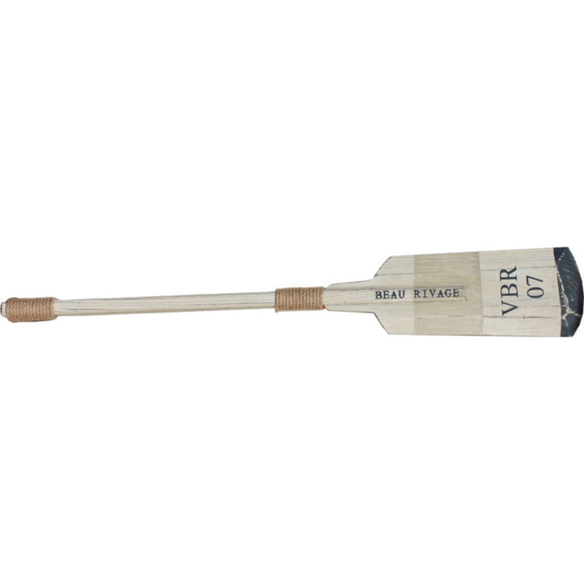 Tan rope is wrapped around the handle and throat of the oars while the tips of the blades are a deep blue. Printed in blue on the blades are the words ?Beau Rivage? and ?VBR 07?. While they're ideal for decorating nautical and coastal themed rooms, they would also be great additions to a hallway, bathroom and in almost any room comprised of a blue or neutral colour palette. Everyone will want to get their hands on them to see just how lifelike they really are. Maybe you can't get out on the boat as often as you'd like, but at least you can have a reminder of it with you that you can see every day.