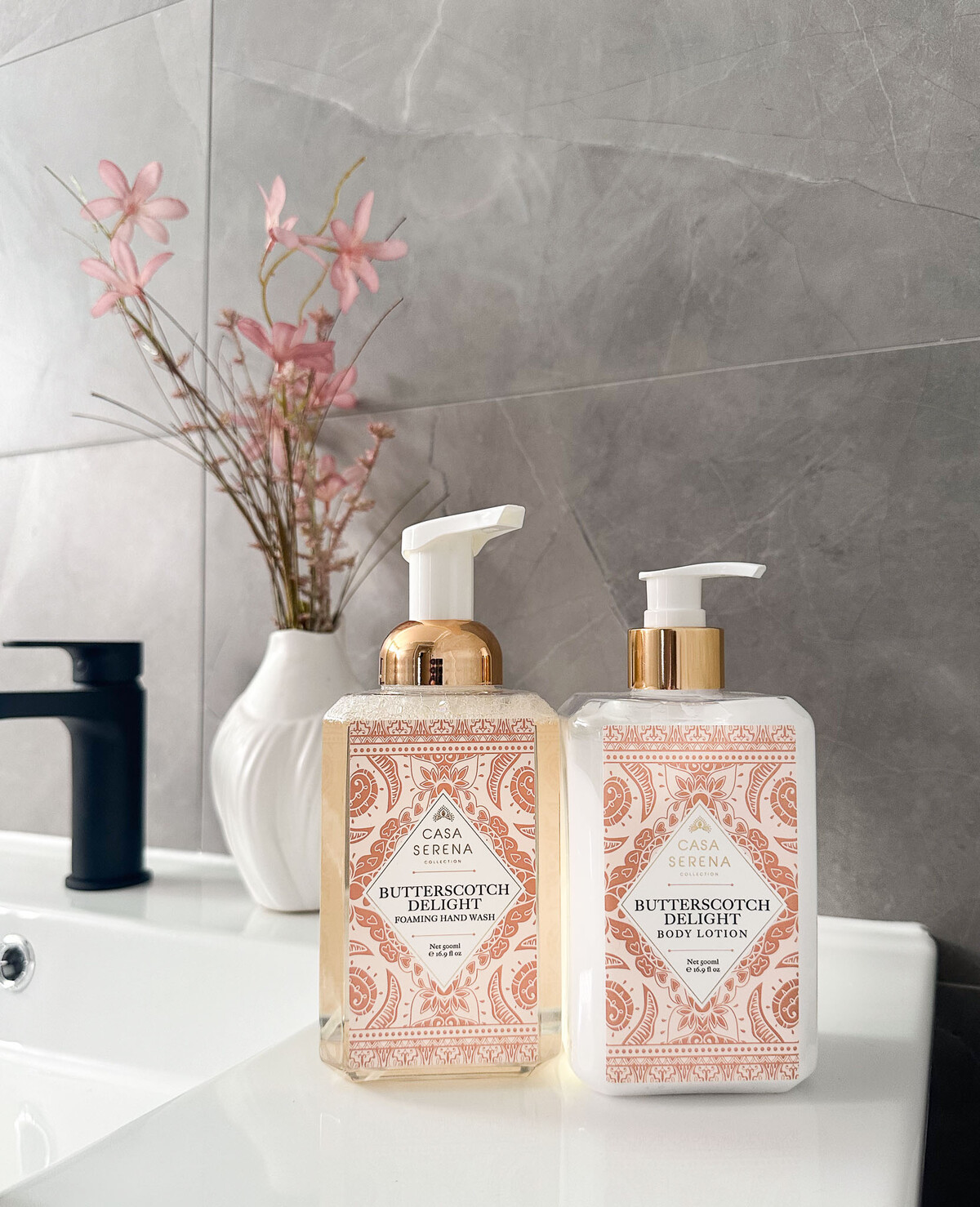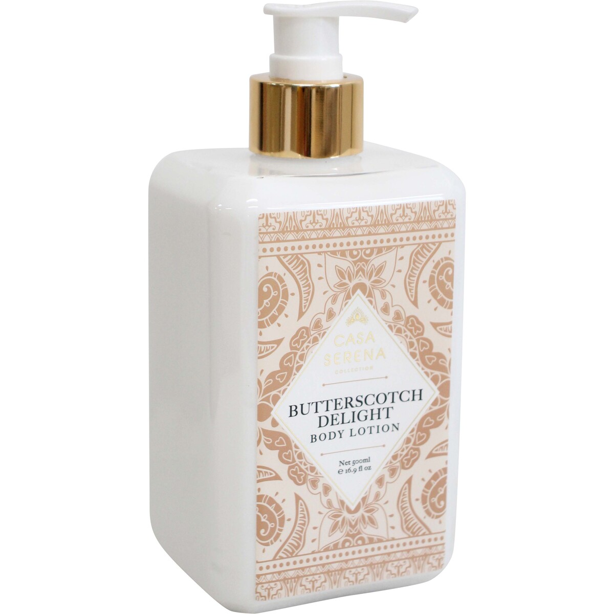 How’s this for a standout addition to your shelves? Our Casa Serena Butterscotch Body Lotion practically jumps out in its 500ml bottle, which we think really gives off an instantly inviting vibe. The warm, caramel hue is a visual treat - but it’s the formula that we find customers coming back for. Australian made, and carefully blended with water (aqua), nourishing glycerin, Vitamin E and a hint of that decadent butterscotch fragrance, this lotion ticks the boxes for both everyday use and something a little special.