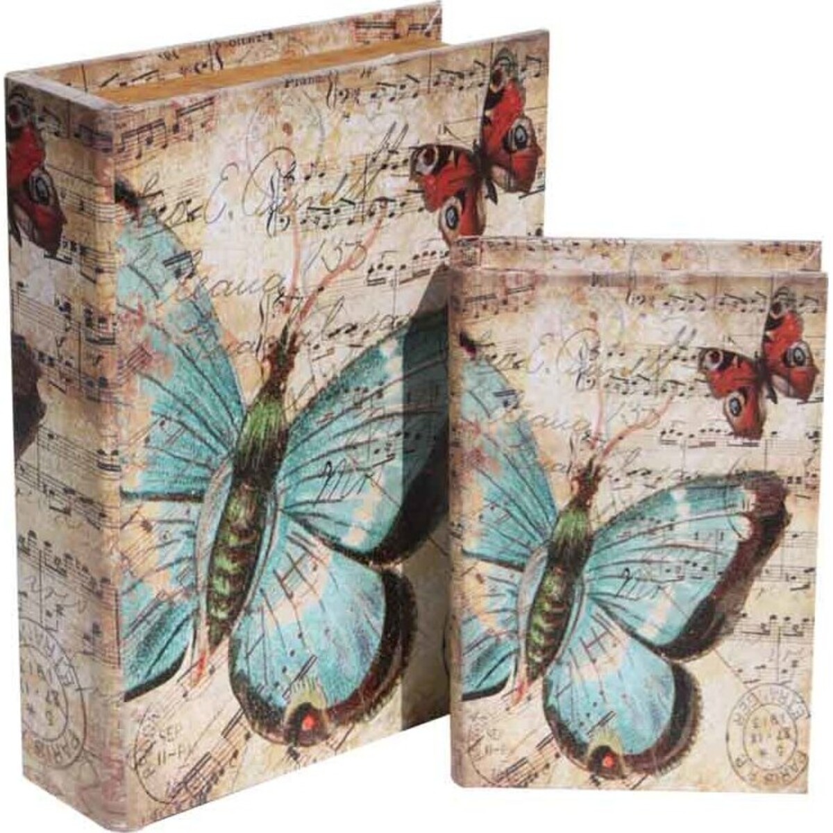 The Butterfly Music Book Box is exactly what it sounds like. Colorful butterflies fly between the musical notes of a score on this set of two book shaped boxes.