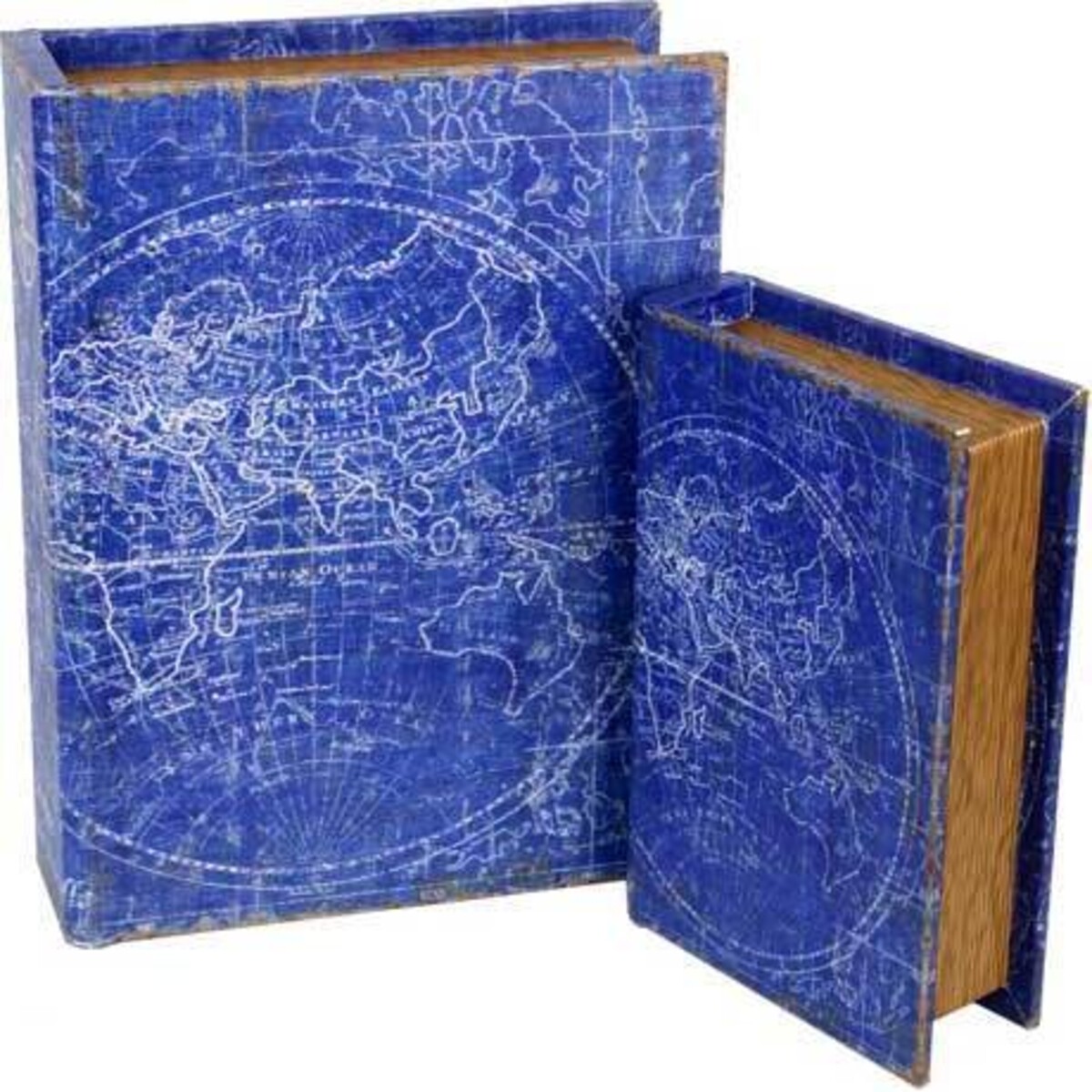 Created with a sturdy structure with the help of wood and fabric, this set of tow book shaped boxes comes with an antique vintage feel that will be loved not just for the usage of vibrant blue colour but also the choice of a graphics which is nautical in its theme. Bold the looks of any space with the charming addition of this set of tow boxes that are as great at keeping things well organized and safe as they are as decorative inclusions sin the living room, the coffee table, the bedside table or the dresser. The shape of the books have been p[perfectly achieved as has the gorgeous printing on the covers. The sizes have been chosen so that they could be stacked one on the other and thus does save on space as well. Bring home this elegant set, gift it this holiday season to someone whose love for things antique or love for books is known to you.