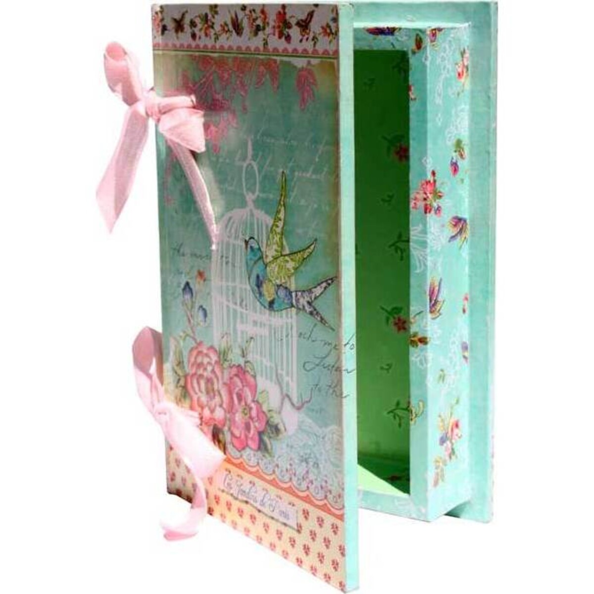 Introducing the Modello Bird Book Box. This fabulous piece of d??cor isn't only gorgeous, but it's also functional. It looks like an oversized book, but the inside is empty so you can fill it with whatever you desire. On the front are lovely floral borders outlining a pale green background with a sweet bird, birdcage and rose design at the center. Expect your guests to give you a lot of compliments on this piece and ask where they can get one of their own.