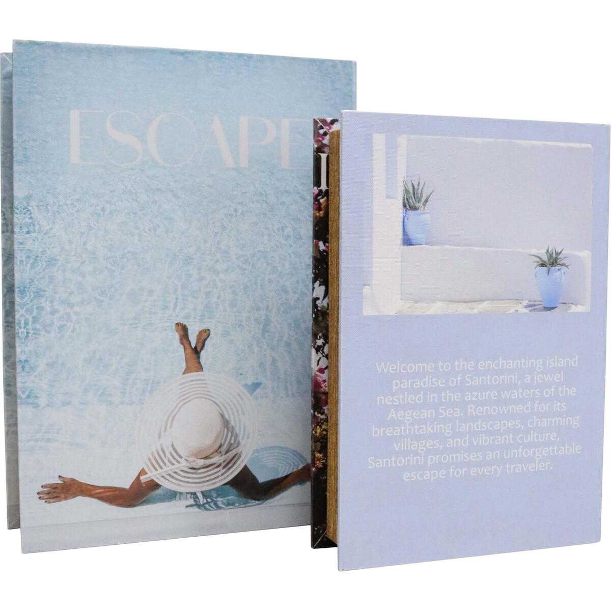 These book boxes also serve as an idyllic gift choice, promising to be a hit with consumers looking for that perfect blend of practicality and escapism. The 'Escape' and 'Santorini' designs evoke a yearning for sun-soaked shores and you can add that splash of vacation allure to a room's ambiance without ever having to leave. Let your customers be swept away by the charming elegance of the Book Box S/2 Lrg Escape Isles, a must-have for those who appreciate the finer details in decor.