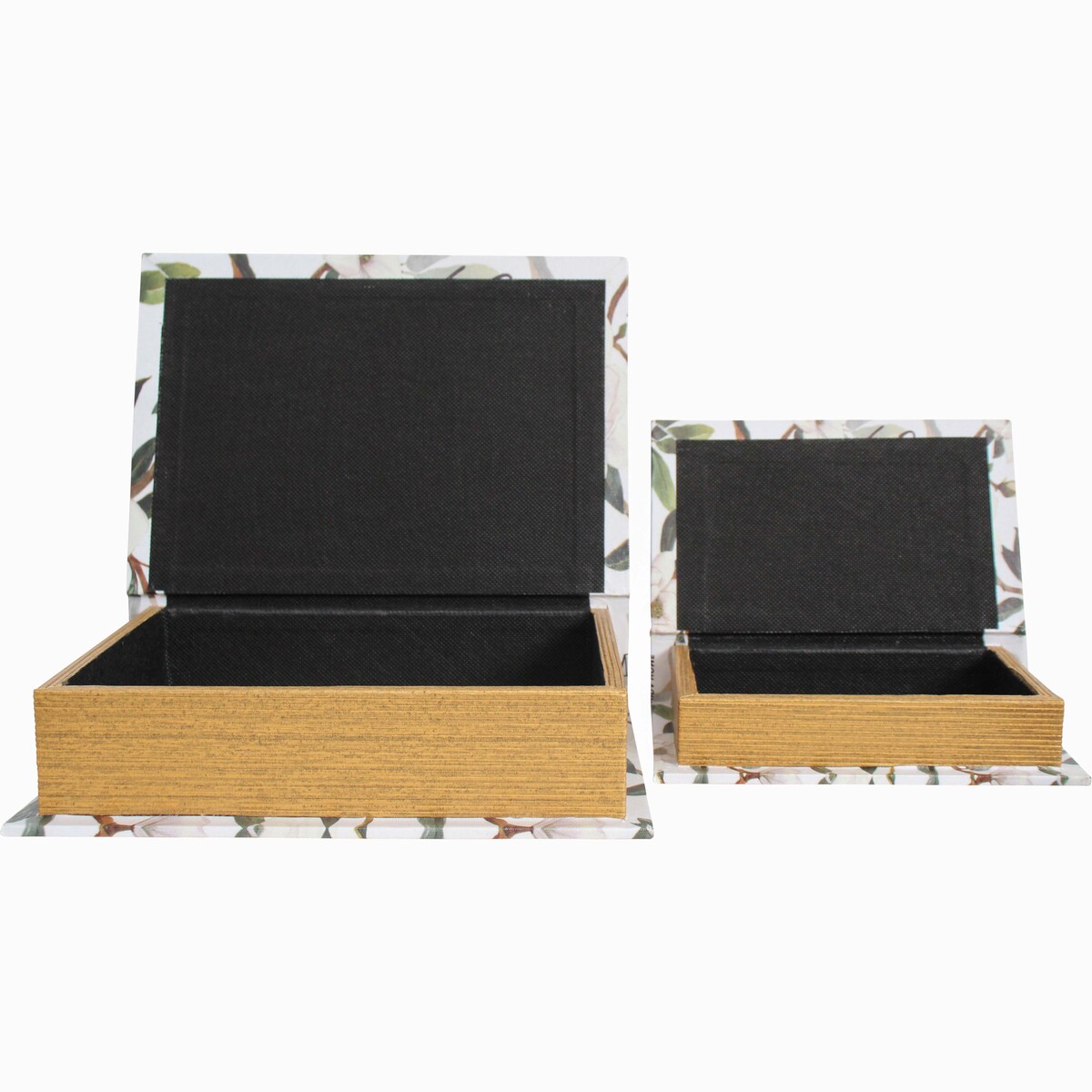 These boxes offer a practical storage solution for several objects, including jewellery and accessories, clothing accessories, loose cash, and tiny trinkets. Book Box S/2Â Magnolia Home aid in maintaining things in an orderly organisation. The best part, having these practical boxes makes it simple to find and collect one's belongings whenever necessary. To give a touch of natural elegance, these stunning boxes can be set on a dresser, vanity, or coffee table. Did I mention that these beautiful boxes can be used as focus points in various rooms of the house? Great to be displayed singly or stacked to create a layered appearance. Any area will have a natural feel because of the magnolia design's simple blending with existing furnishings.