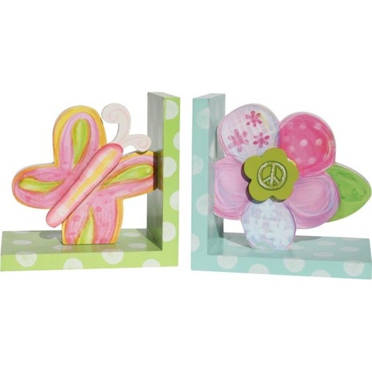 The Bookends - Butterfly Flower features an exciting design! These L-shaped bookends are adorned with a sculpted figure of a butterfly and a flower. They are also painted in such lively and juvenile pastel colours.