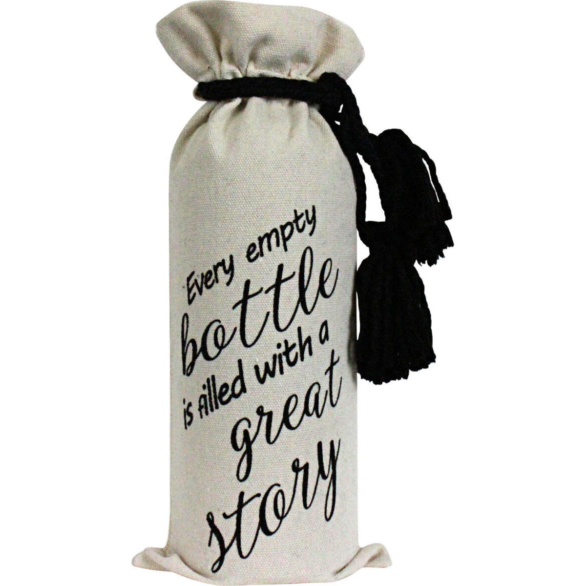 Adding little accessories that make even the simplest of articles of everyday use look and perform their best is what makes this bottle cover so special. After all, when you reach for that sip of water and take the bottle out of this cottony feel cover, you will be reminded of a specula evening spent with the company of someone special. The cover is made from a fabric that has cotton and polyester combined and a beautiful off-white colour on which the message in charcoal black looks simple and yet rivetingly attractive, the tasselled rope closure adds more to its look. When presenting the next bottle of Bubbly or wine, settle for a special cover that will remind your friend of the special evening that will always keep the story of the bottle and the evening, alive in memory.