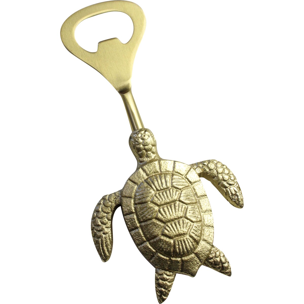 The bottle opener's solid aluminium construction not only gives it a satisfying weight in the hand but also adds an attractive touch to any kitchen or bar. Its gold hue adds a contemporary twist to the classic aluminium material, making it a stylish and functional addition to any space. The decorative potential of the turtle should not be overlooked – its intricate detailing, from the textured skin to the bony shell adds a touch of sophistication to any space while serving as an aquatic wonder. Whether placed atop kitchen counters or bar carts, there's no denying that adding this turtle-inspired piece is sure to liven up any interior decor!