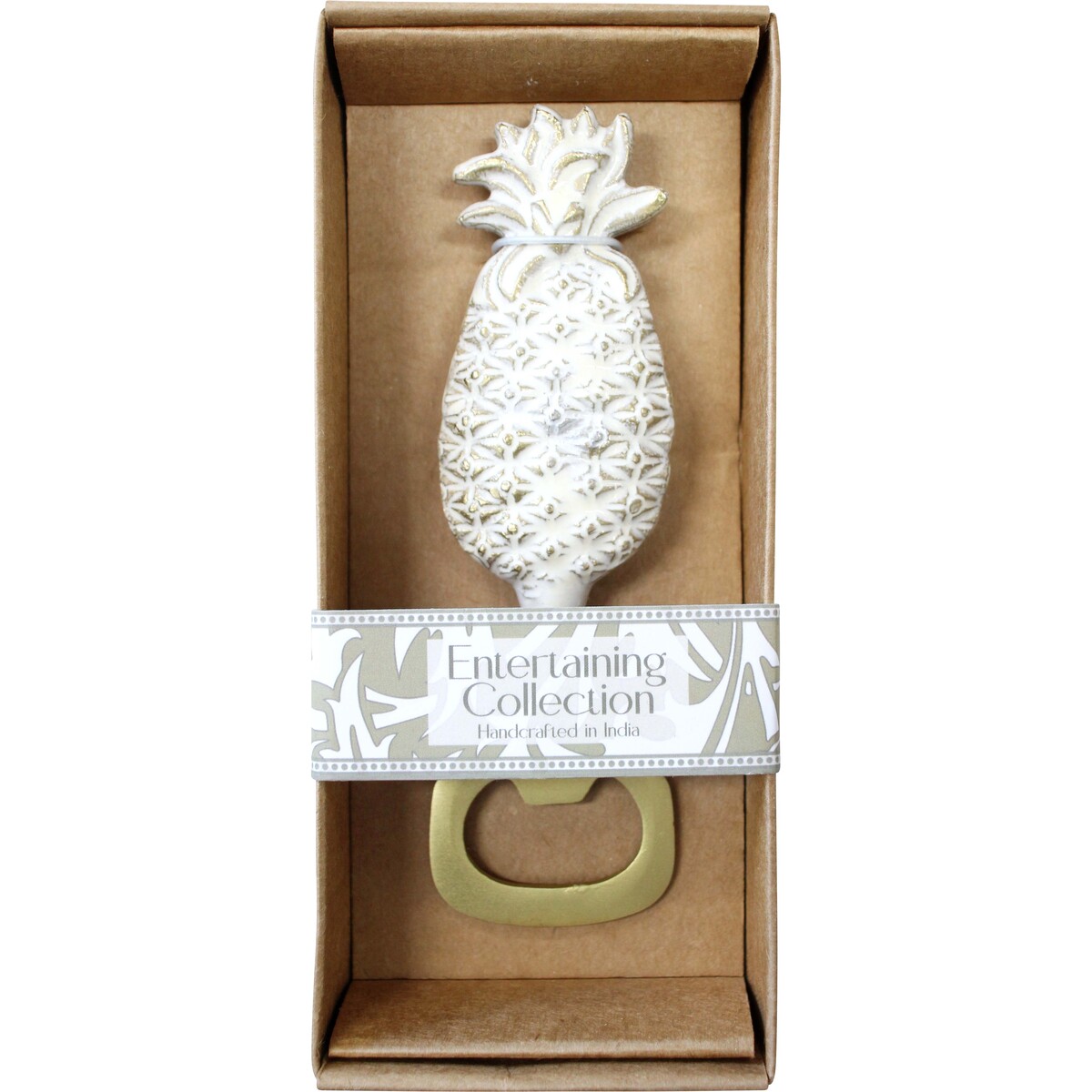 Elevate your entertaining game with the exquisite Bottle Opener Pineapple White/Brass, a must-have accessory for any sophisticated host. Meticulously handcrafted in India, this stunning piece marries functionality with elegance, offering your customers an item that is as much a conversation starter as it is a practical tool.
