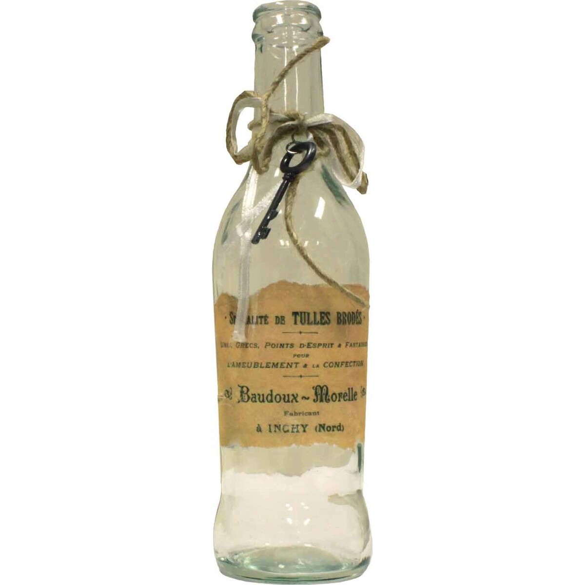 The Bottle Vintage Key glassware is made from high quality glass materials. It has clear and transparent finish for a clean and modish aesthetic. The long-neck design is complemented with the shapely crafted body. It has torn and faded label at the center of the bottle. The papyrus-like label highlights the texts in French for a classic twist.