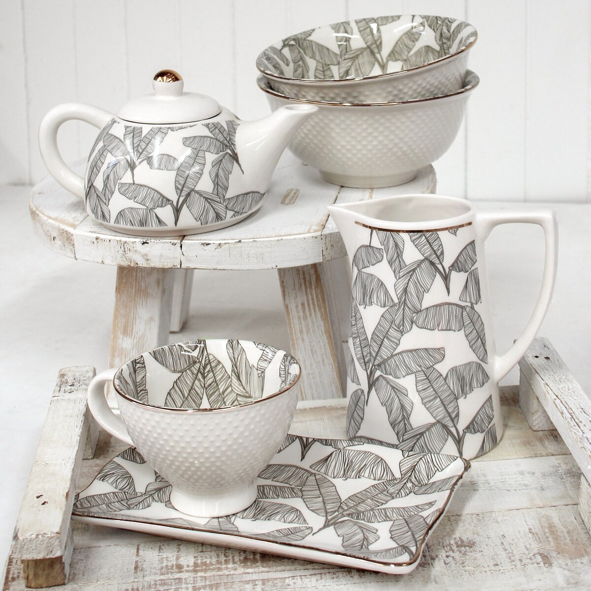Adding an exciting depth to one's dinnerware comes easy with Bowl Banana Leaf. This bowl has a summer vibe that transports one's interior to a tropical paradise. This gorgeous porcelain bowl is handy if one wishes to enthral guests by making one's dining setting impressive and inviting. Serving food in attractive dishes have an impression on how appealing it comes out. This is also a premium quality dish, distinguished from other earthenware because Porcelain has refined grains. Due to the increased toxicity of plastic, Porcelain offers a palatable alternative that does not emit chemicals into one's food. This high-quality piece asides from its conventional functionality to serve it can be used for nuts, fruits, and sweets.