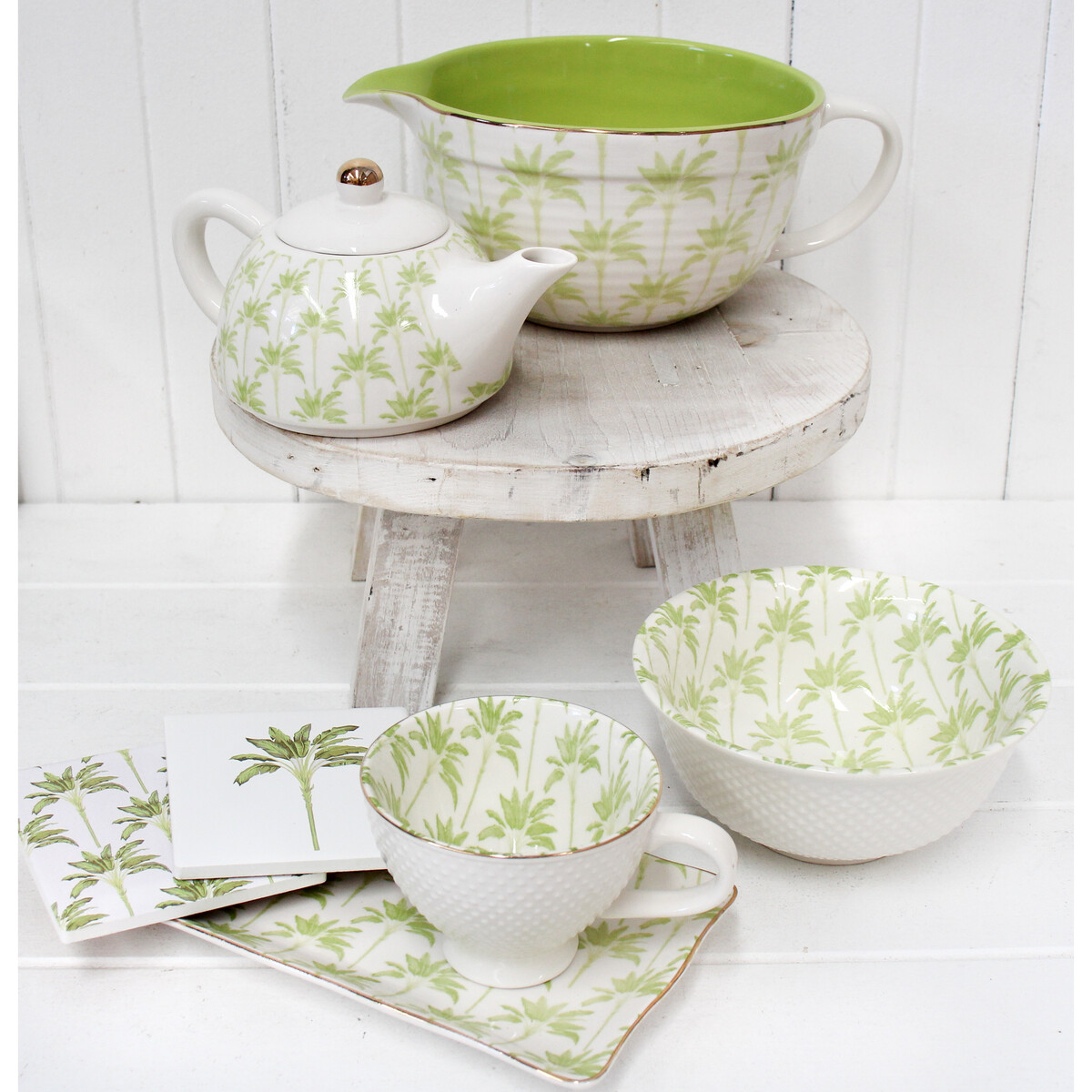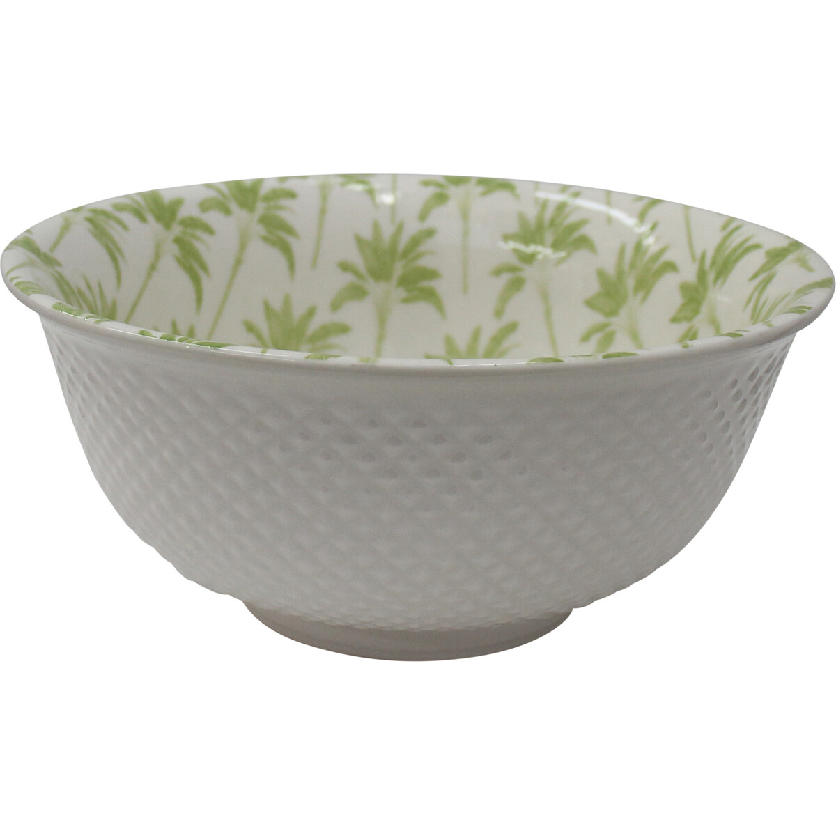 This simple yet enchanting bowl makes for an amazing addition to your kitchenware and complements the rest of your décor very well. This stunning bowl has a plain palm tree print. Its plain green print and its beautiful white textured outside give it that much-needed elegance. It's great for sharing a bowl of popcorn when your friends come over for a movie night! This beautiful bowl has been made of the finest quality porcelain and it will become your go-to bowl for serving scrumptious snacks. This stunning bowl is durable and strong, so you never have to think about the upkeep of it. It is an ideal gift along with the plate and jug of LaVida's elegant Banana Palm tree range. This attractive bowl will make it an excellent present for your friends and family, no matter the occasion.