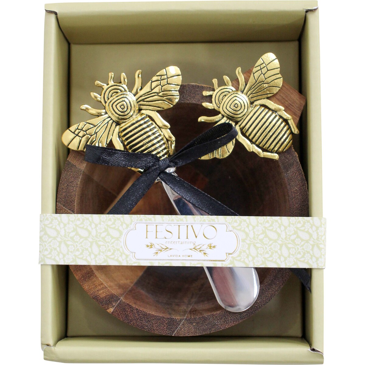 Introducing the elegantly crafted Bowl & Bee Spreader Set, a delightful addition to any homeware collection that brings a touch of nature's charm to your dining experience. Made from the finest acacia wood, this set boasts durability and a natural aesthetic that complements any home or office decor. The spreaders feature intricate metal bees perched atop, adding a whimsical yet opulent flair to your entertaining toolkit.